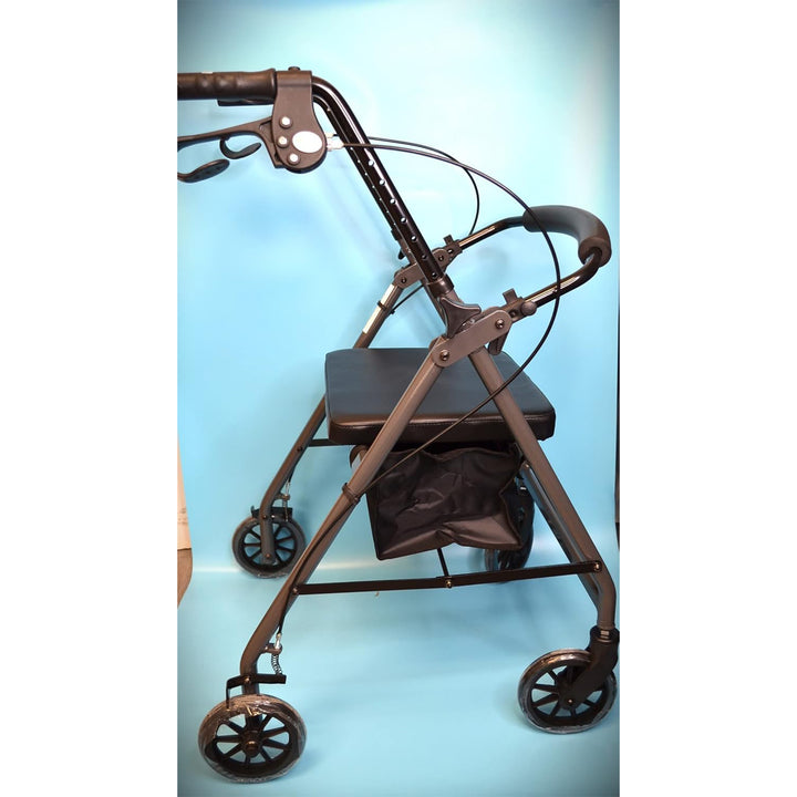 • Lightweight aluminum rollator with 4 wheels for reliable mobility support