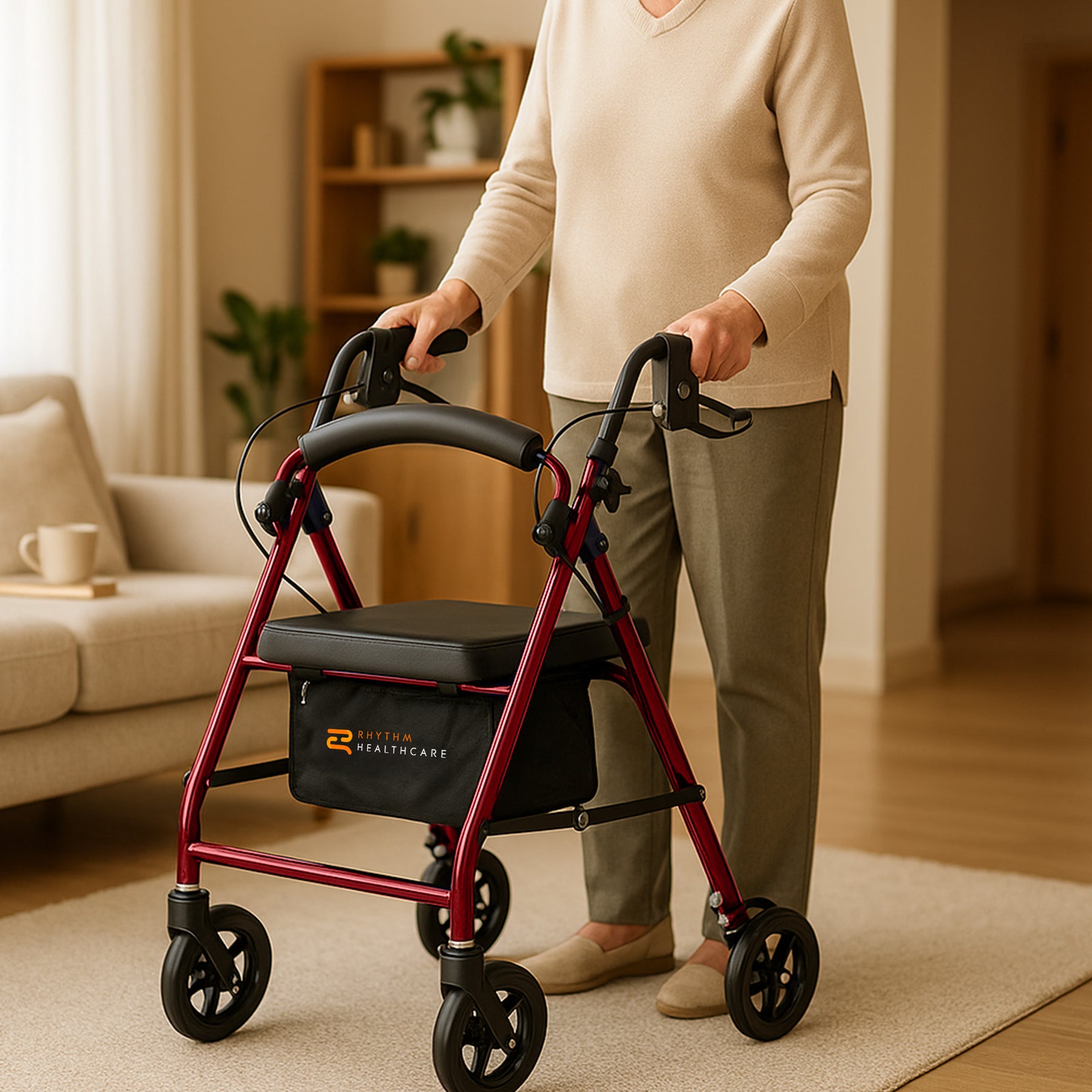 Rhythm Healthcare is dedicated to providing trusted solutions for mobility, crafted to bring independence and comfort to daily living. The Royal Aluminum 4 Wheel Rollator embodies this commitment by offering practical design features, dependable construction, and user-focused innovation for seniors and caregivers alike.