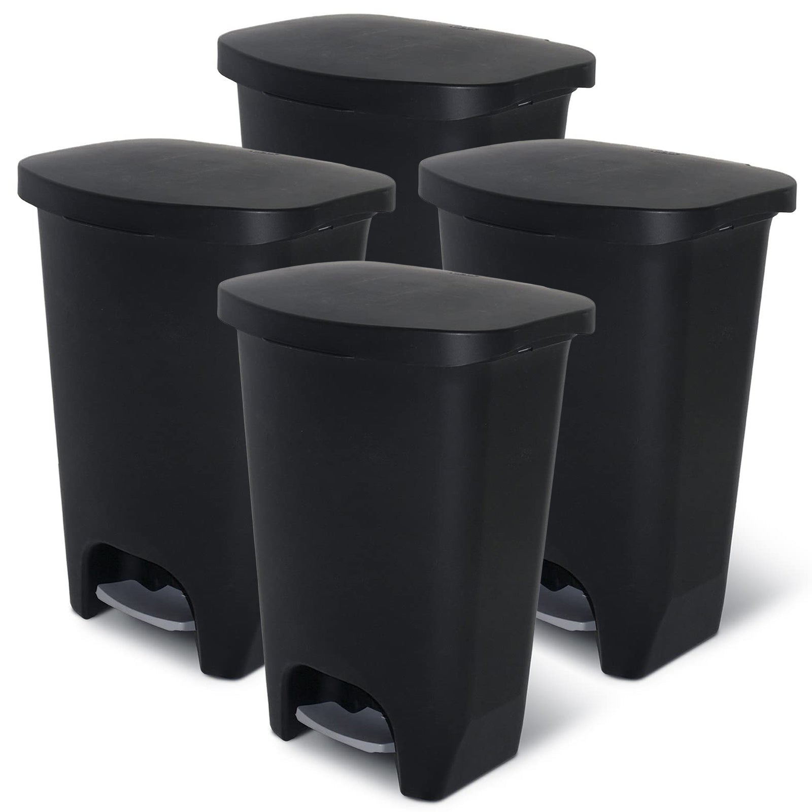 Glad Kitchen Trash Can with Lid and Garbage Bag Rings, 13 Gal, Black, 4 Pack