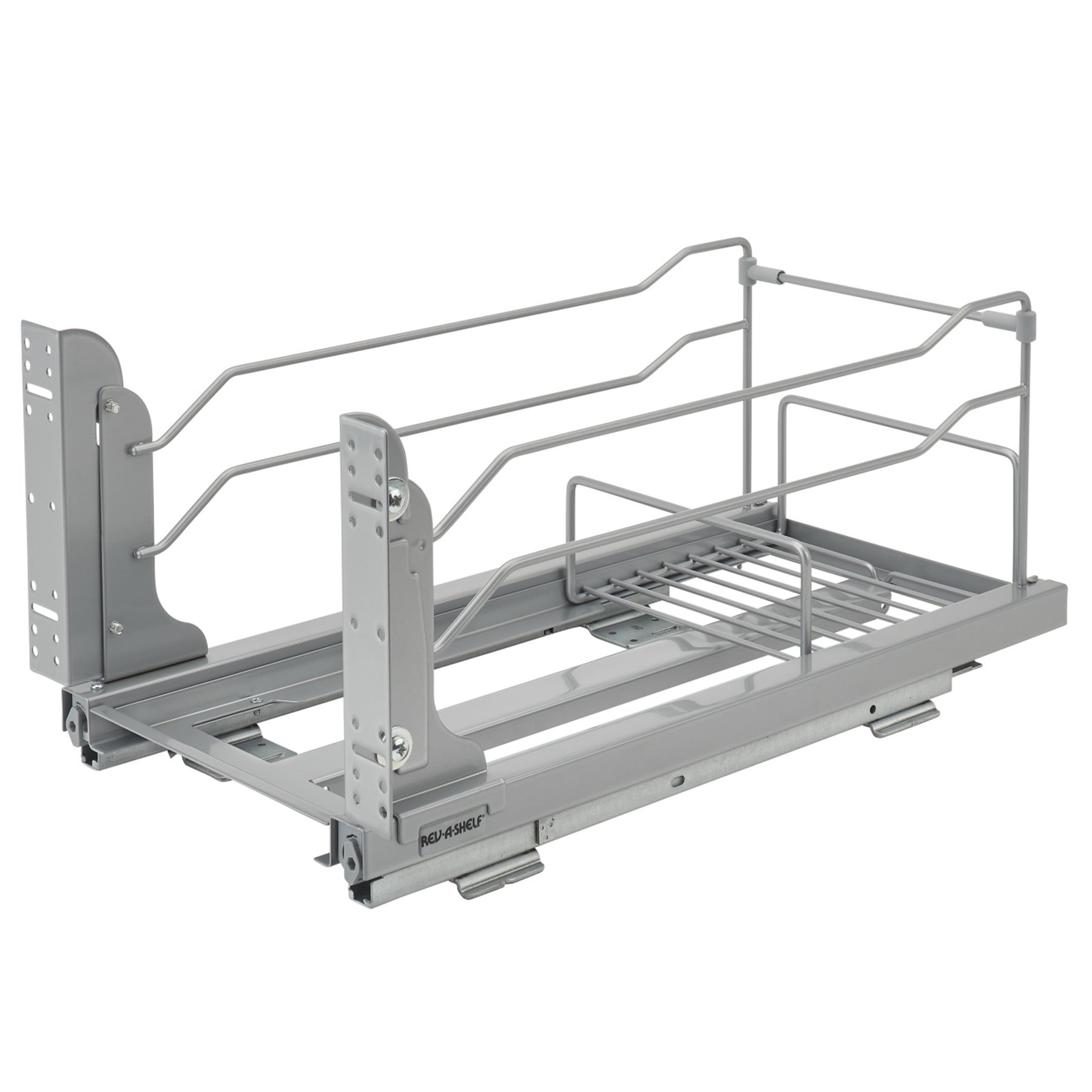 Designed for a cabinet opening width of 11.13 to 15 inches, this space-saving trash container comes with all the hardware you need to install this pullout trash can system. With an easy-to-install design for a no-fuss setup, this system includes (1) silver 50 qt. waste container with mounting hardware. The rear storage of this system is perfect for storing trash bags or other cleaning supplies.