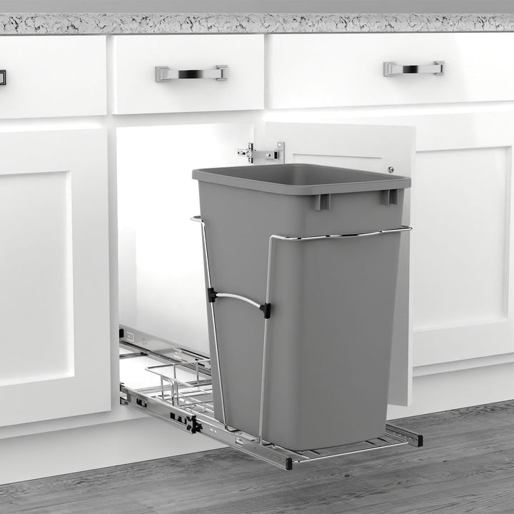 Rev-A-Shelf Pullout Trash Can 35 qt. for Kitchen Cabinets, Silver, RV-12KD-17C S