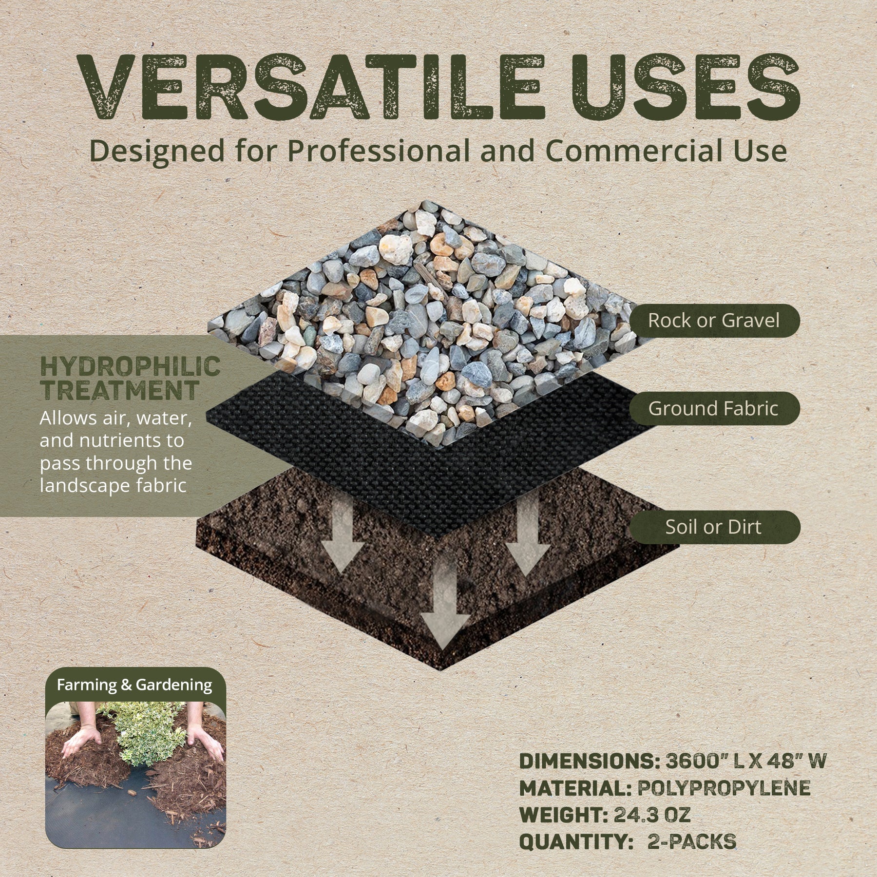 • Professional grade landscape fabric is ideal for landscapers, contractors, and garden centers