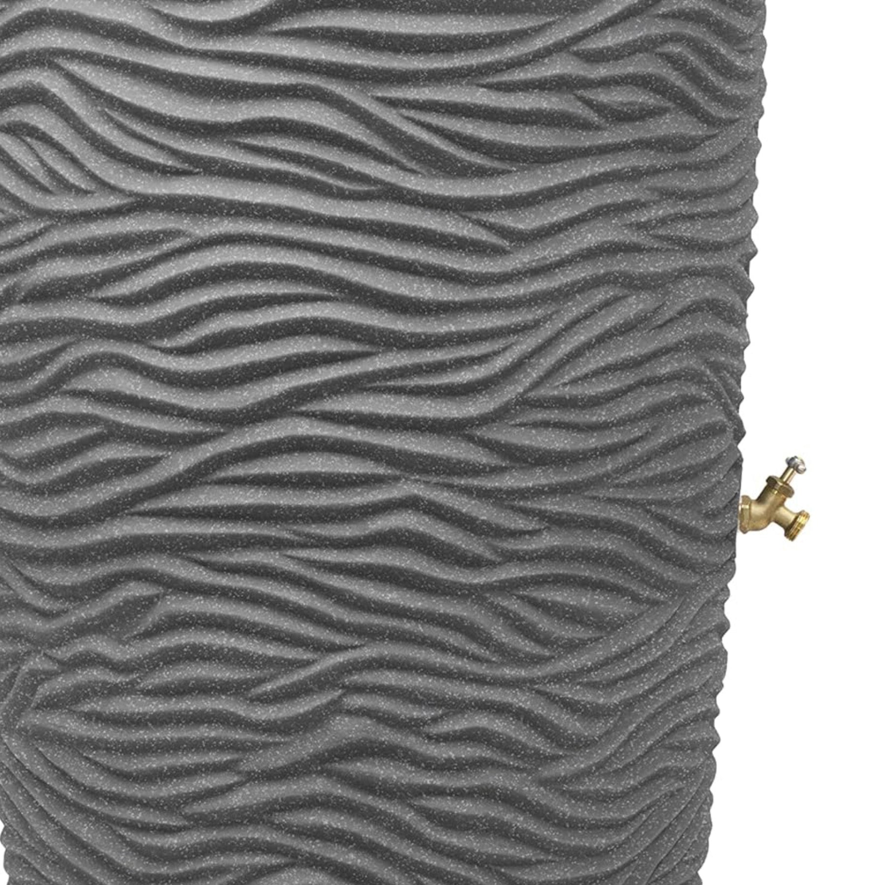 - Dark granite finish adds curb appeal to raised rain barrels with a flat-back profile that fits neatly against walls or fences