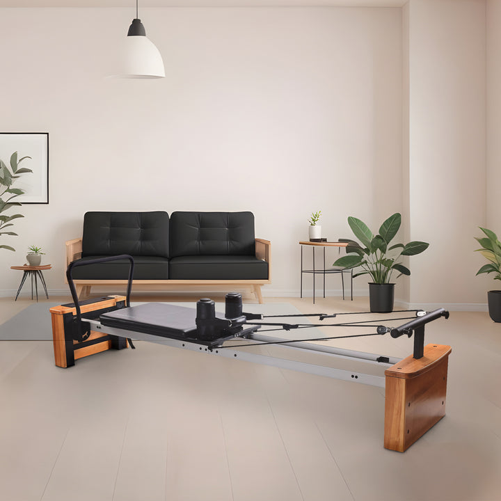 The beautiful wooden base makes this reformer worthy of a place in your home gym. When it comes to performance, the larger commercial-grade ball bearing wheels, wider, more padded platform, and removable and adjustable foot bar make for a quieter, more comfortable, more customizable workout comparable to any commercial studio reformer worth thousands of dollars. Even more, the 9-inch longer, sleek aluminum tracks make it the ideal reformer for taller users. With 4 springs of varying resistance on your AeroPilates Pro XP 557, you will be able to achieve the correct level of challenge making your Pilates workout as intense as you prefer. Complete with the patented Free-Form Cardio Rebounder, your Pro XP 557 provides an excellent cardio workout that efficiently burns fat, increases stamina, and generates energy while toning your abs, glutes, hips, and thighs like no other Pilates machine on the planet. With regular use, the AeroPilates ProXP 557 will tone and tighten every muscle while it lengthens your spine and retrains your body to move efficiently and gracefully.