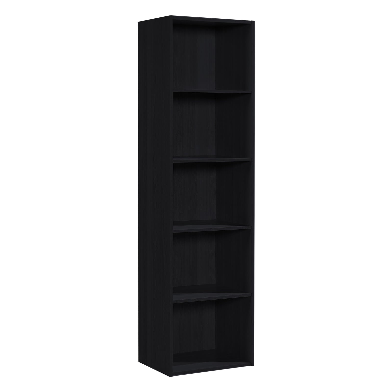 12 x 16 x 60 In 5 Shelf Bookcase Organizer, Black Wood Finish (Open Box)