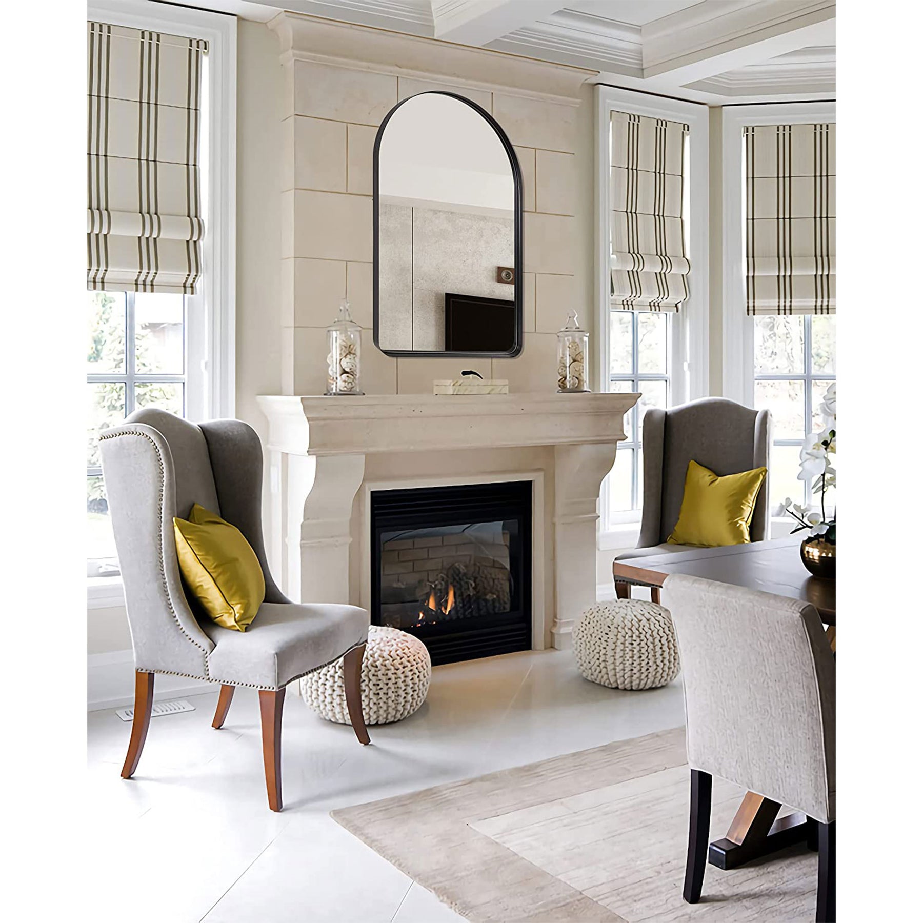 22 x 35 x 2 Inch Wall Mounted Metal Frame Arched Vanity Mirror, Black (Used)