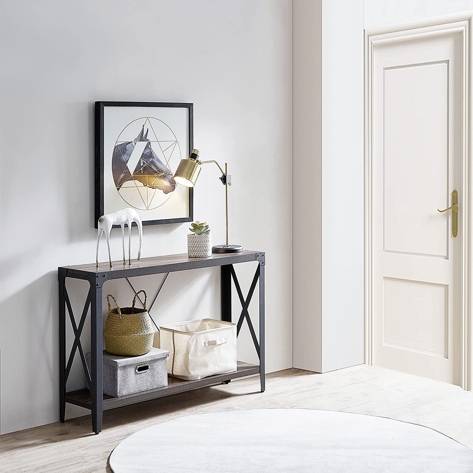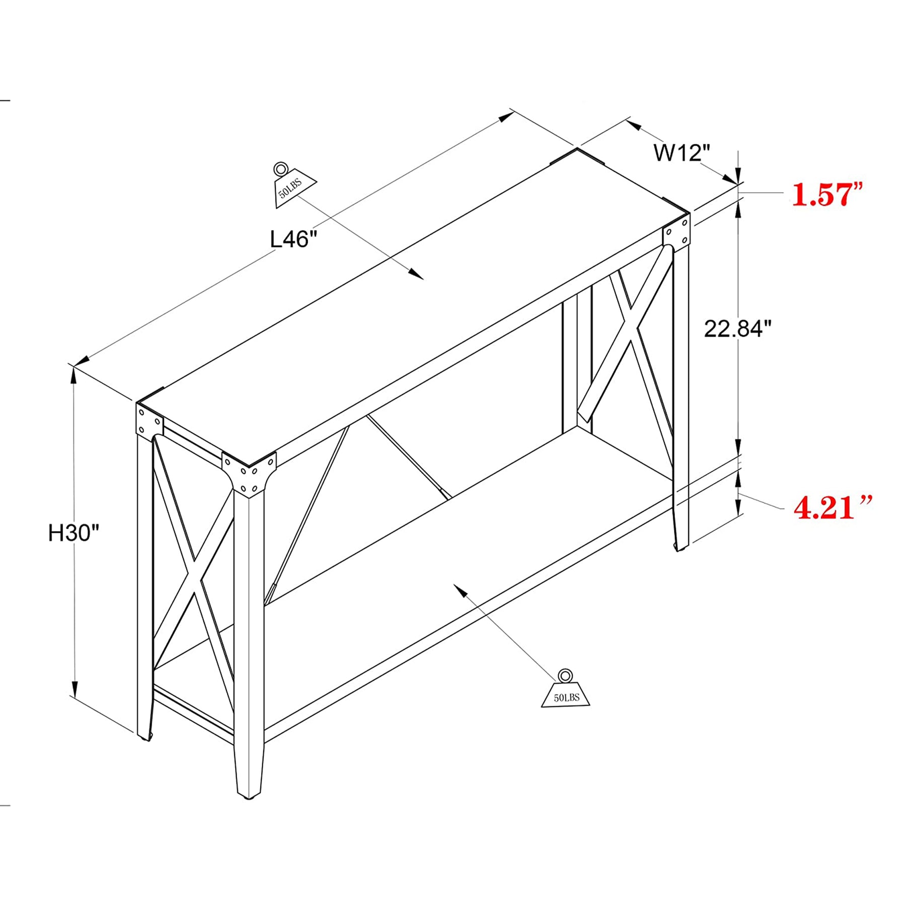 46 in. 2-Tier Console Accent Table, Dark Rustic Oak (Open Box)