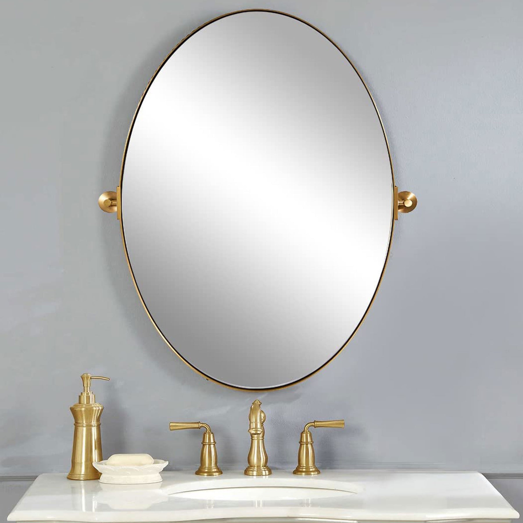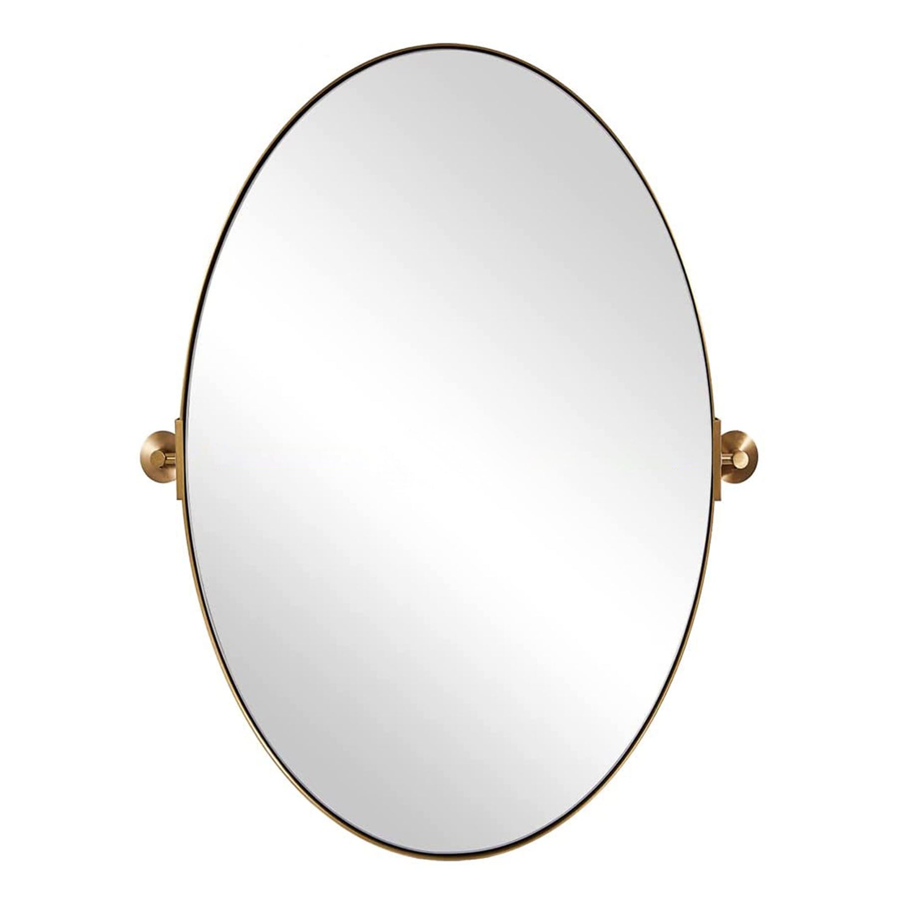 • Oval wall-mounting bathroom vanity mirror features an adjustable pivoting frame that allows you to tilt the mirror to custom angles
