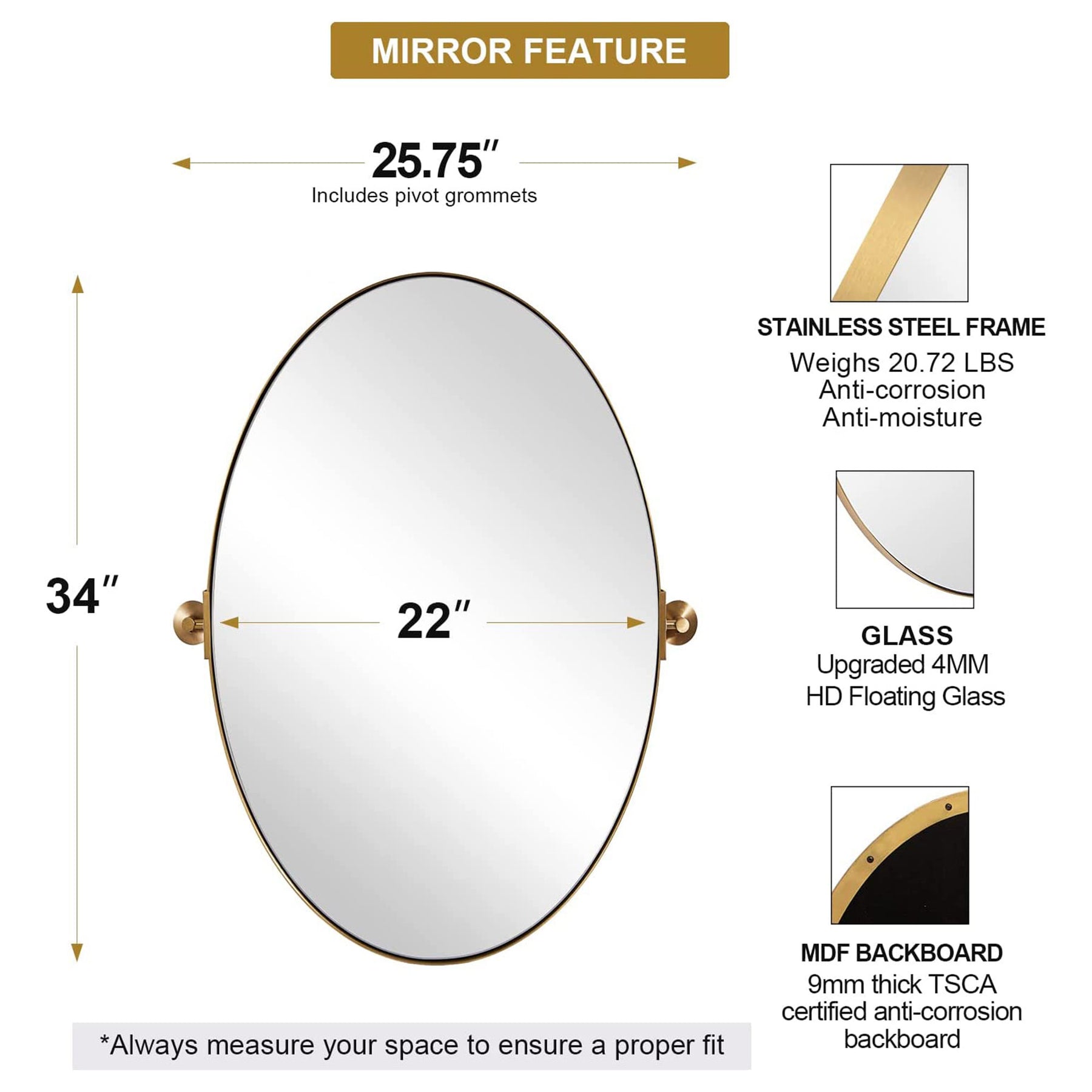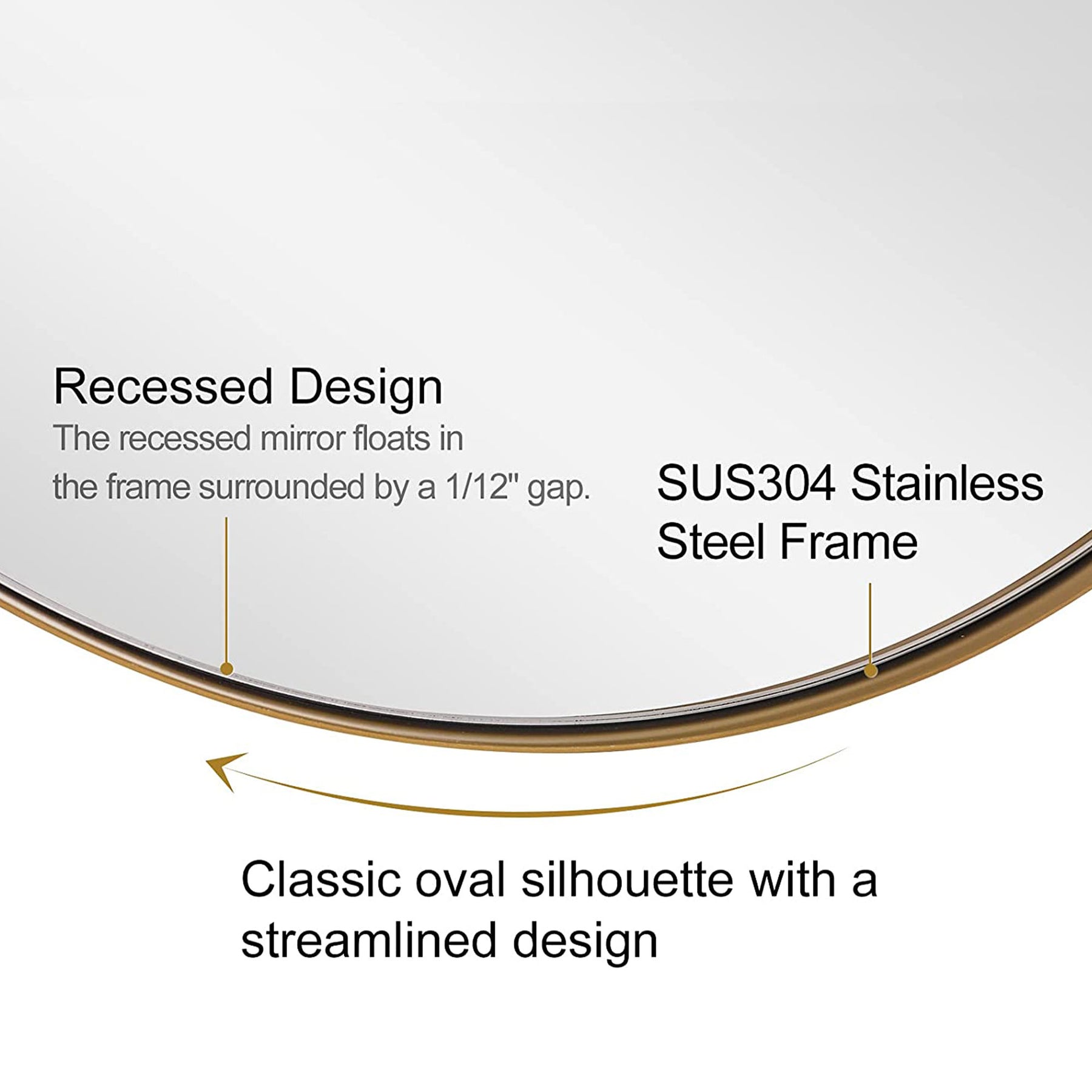 ANDY STAR 22 x 34 Inch Oval Wall Hanging Bathroom Mirror, Brushed Gold (Used)