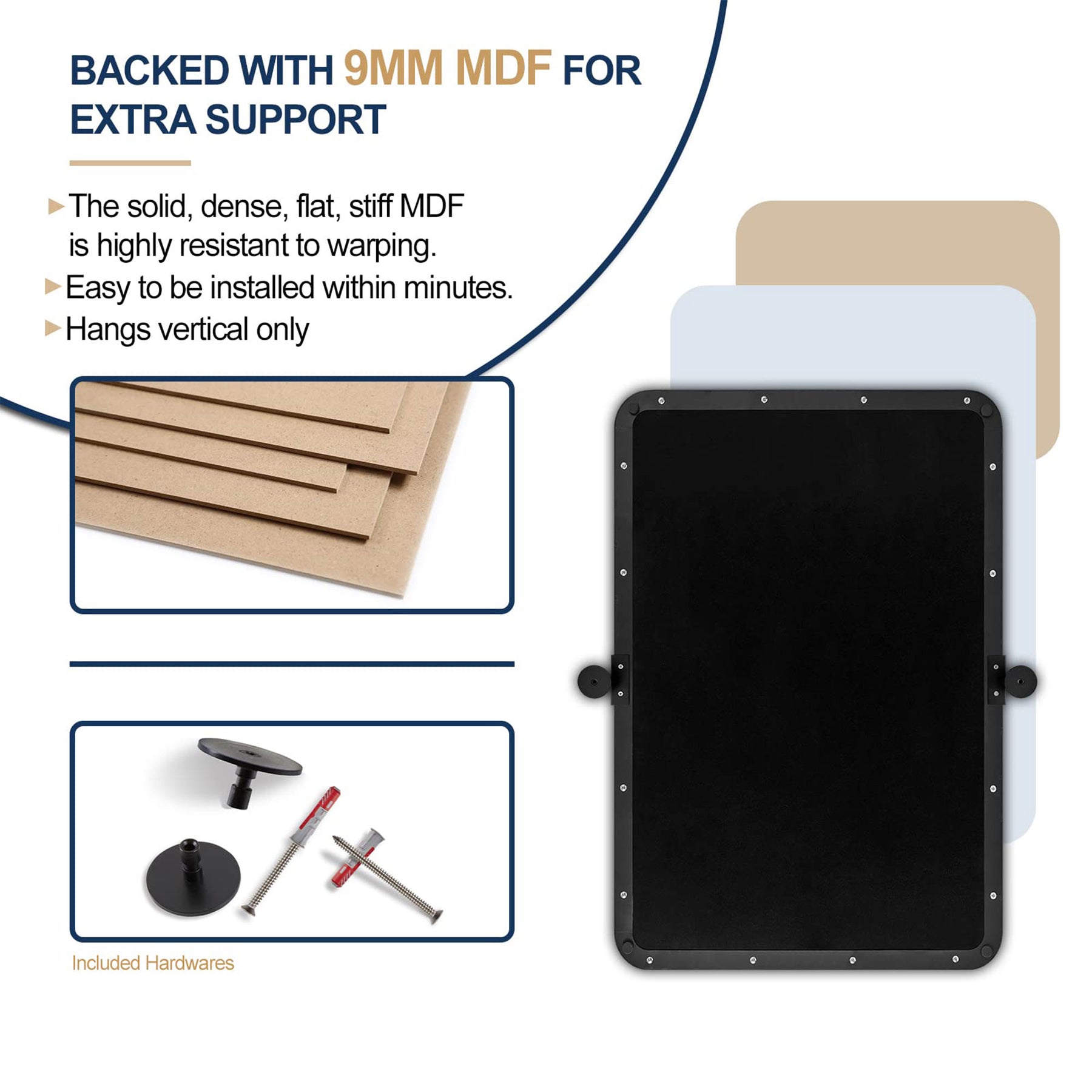• Premium construction features high-quality stainless steel, no-distortion 4MM HD floating glass, 9mm MDF backboard, and sturdy wall brackets