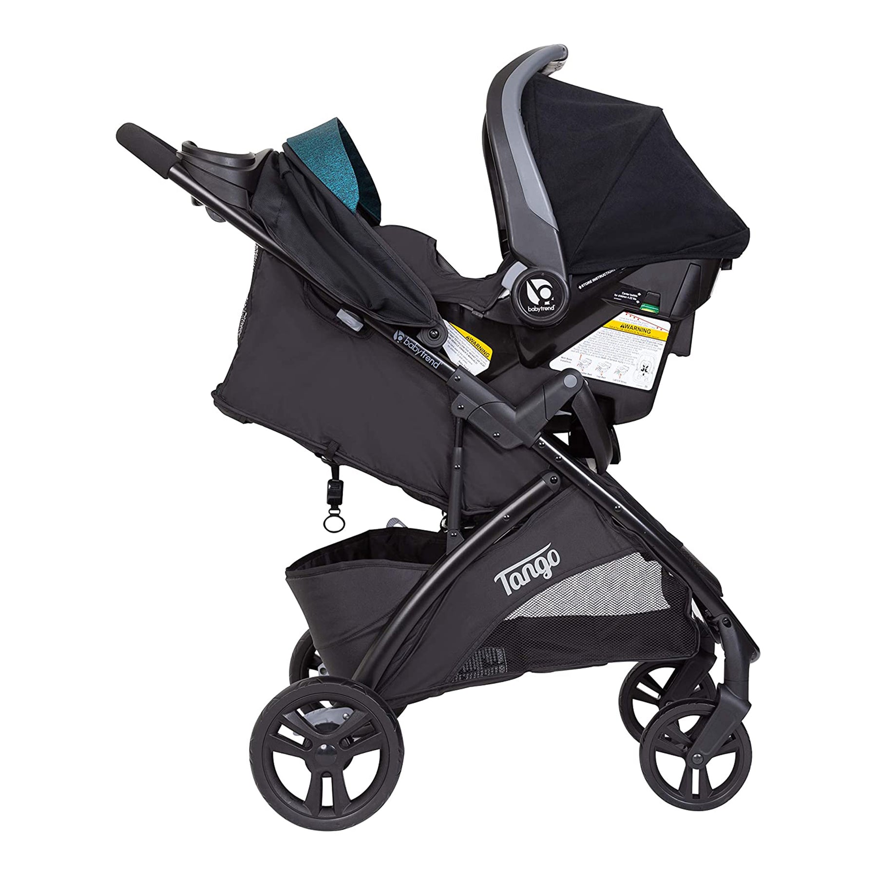 • Comfort Cabin with over-sized UPF 50+ protection canopy, premium padding, dual suspension, and Ally Infant Car Seat and Base (also compatible with other Baby Trend infant car seats)