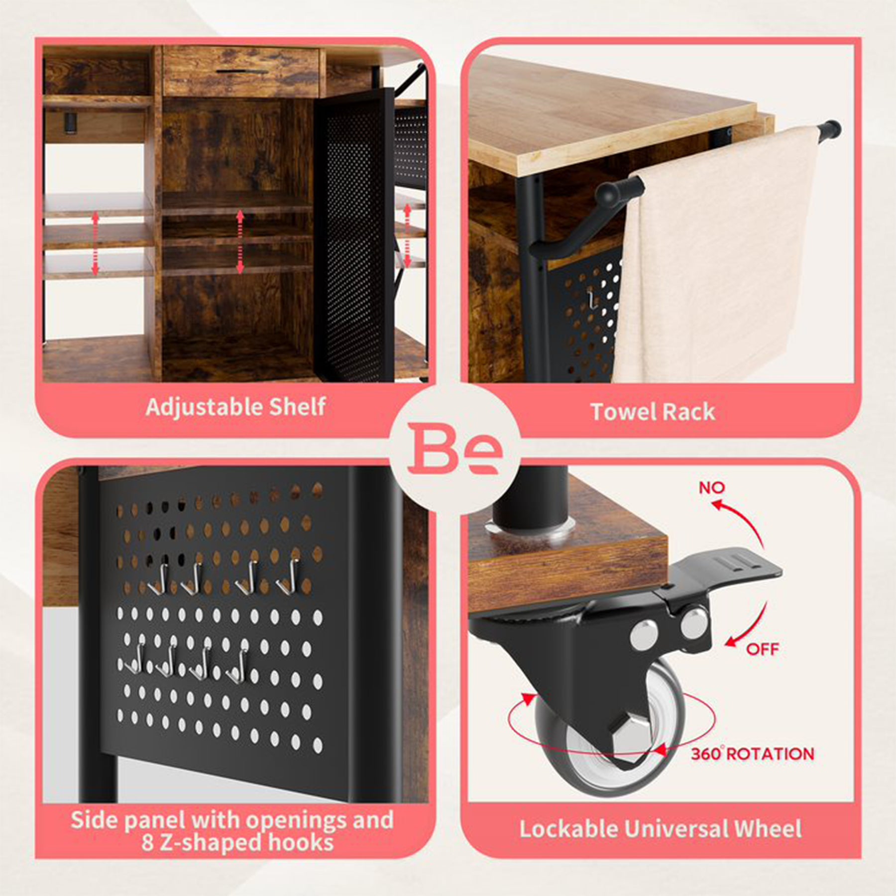Bestier Rolling Kitchen Cart w/Collapsible Surface Extender, Brown (Open Box)