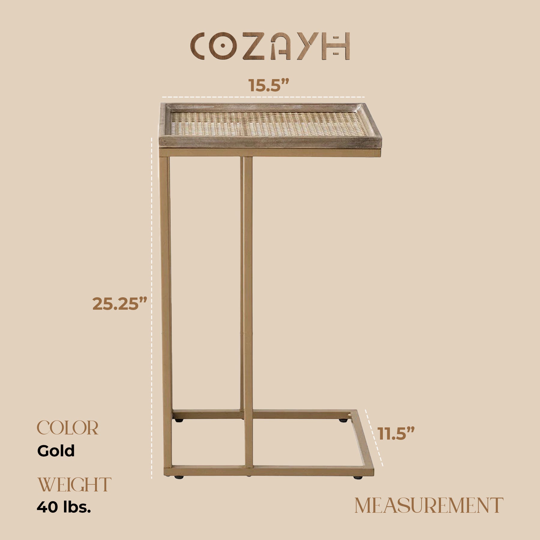 Add a touch of rustic charm and modern functionality to your space with the COZAYH Farmhouse C Table Couch Metal End Table. Designed with a careful balance of form and utility, this piece brings warmth, character, and practicality into any room. Featuring overall dimensions of 11.5”W x 15.5”D x 25.25”H and a weight capacity of 40 lbs, it offers a sturdy yet compact solution for your everyday needs.