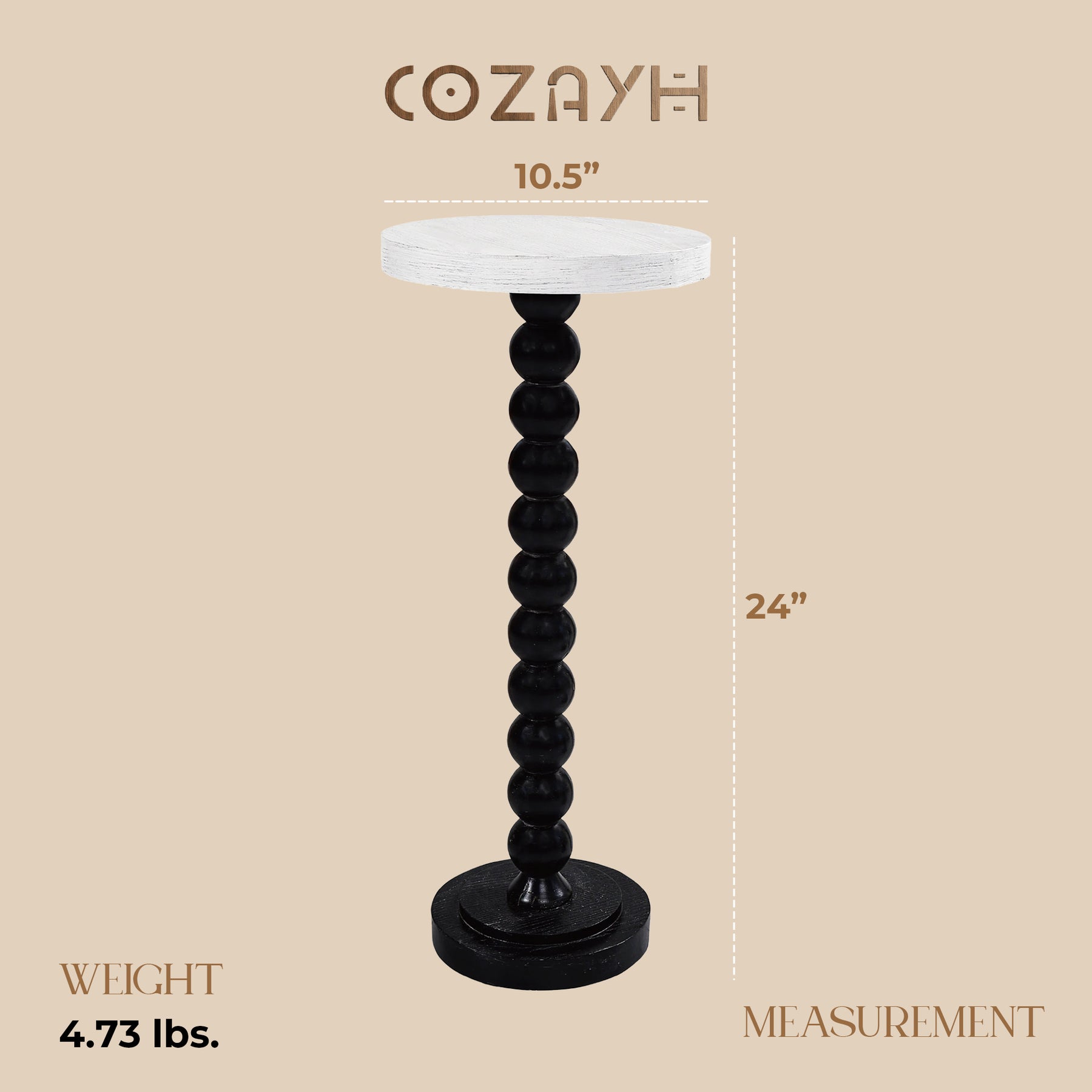 Compact yet practical, this table is ideal for holding drinks, books, decorative objects, or a small lampâwhatever you need within armâs reach. With overall dimensions of 10.5âL x 10.5âW x 24âH, it's the perfect solution for smaller living spaces, apartments, or cozy corners. Lightweight and easy to move, it seamlessly integrates into any room while adding a sophisticated, functional accent to your home.