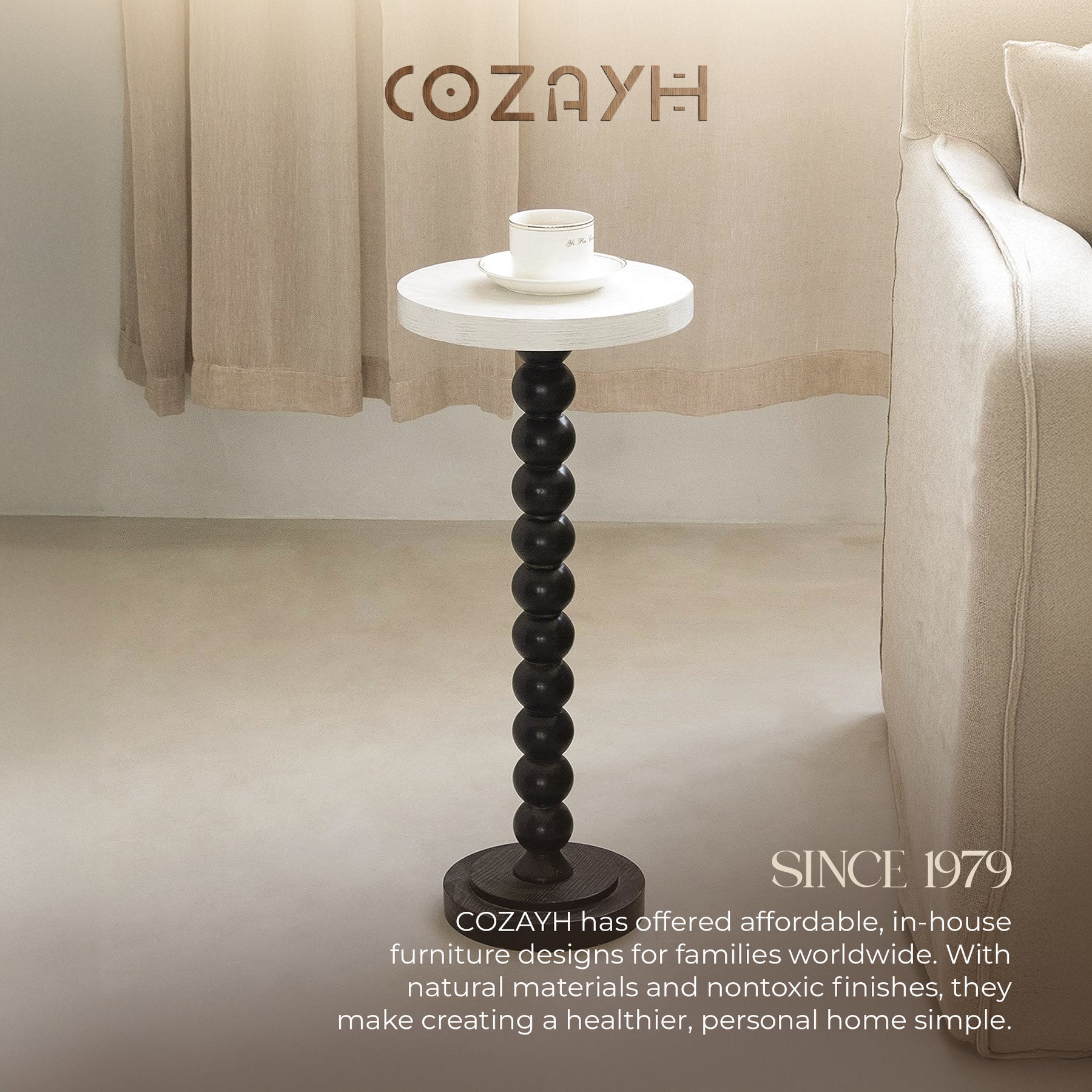 COZAYH Small Pedestal Round End Table, Living Room Furniture, Black and White