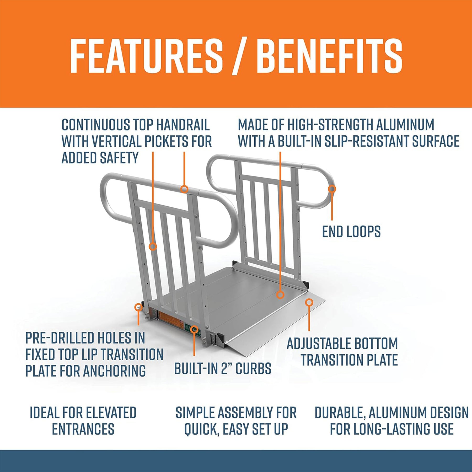 • Lightweight yet heavy-duty aluminum construction is suitable for both temporary and semi-permanent home access