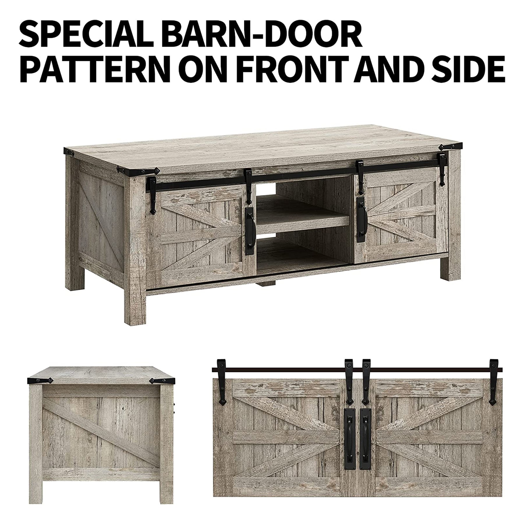 Farmhouse 48 Inch Coffee Table with Sliding Barn Doors, Light Rustic Oak (Used)