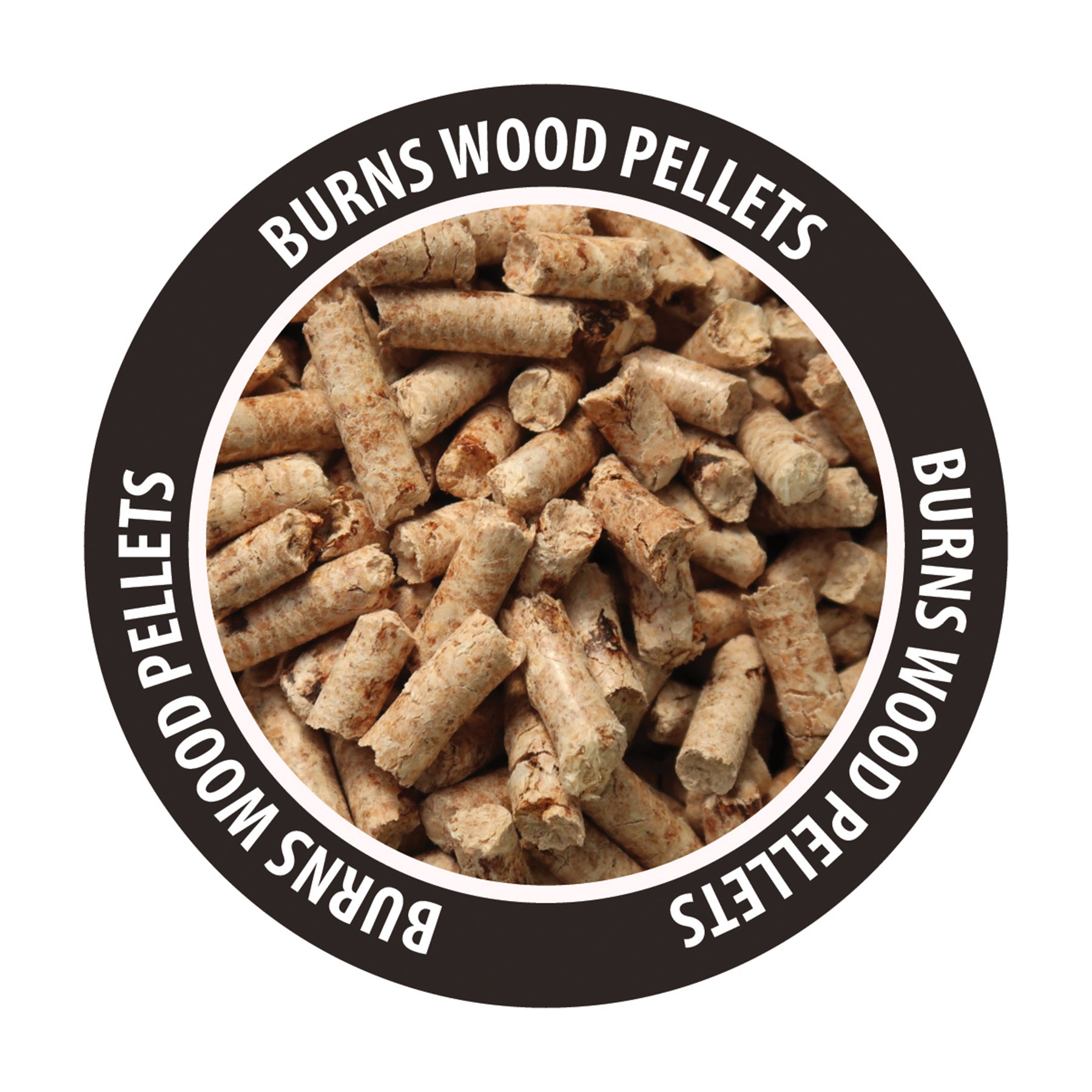 • Burns wood pellets and produces minimal ash using a gravitational afterburner system that minimizes smoke and mess