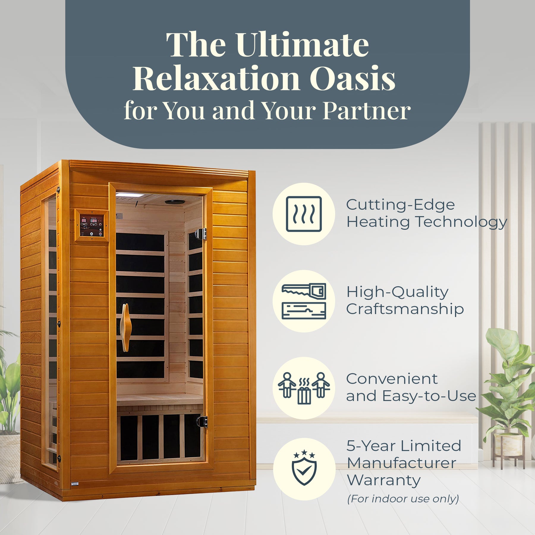 • Wider, softer heat evenly distributed throughout the sauna makes for an ideal sauna experience