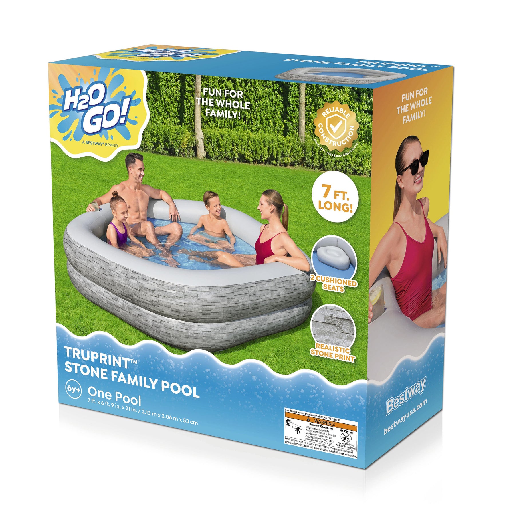 H20GO! TruPrint Stone Inflatable Kiddie Swimming Pool, 7' x 6'9" x 21"(Open Box)
