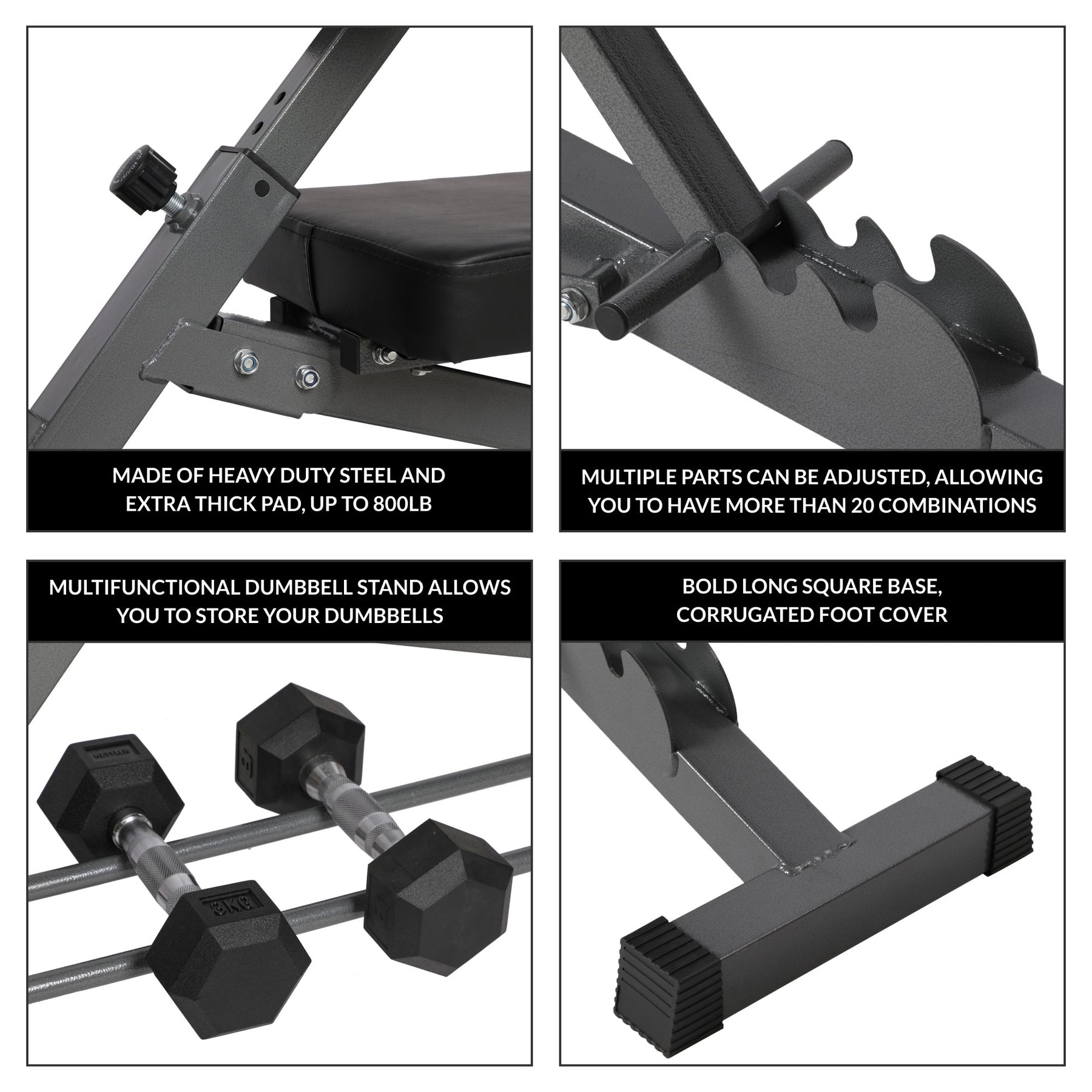 • Versatile multi-functional weight training bench lets you exercise your arms, abs, back, chest, glutes, hamstrings, and core with ease