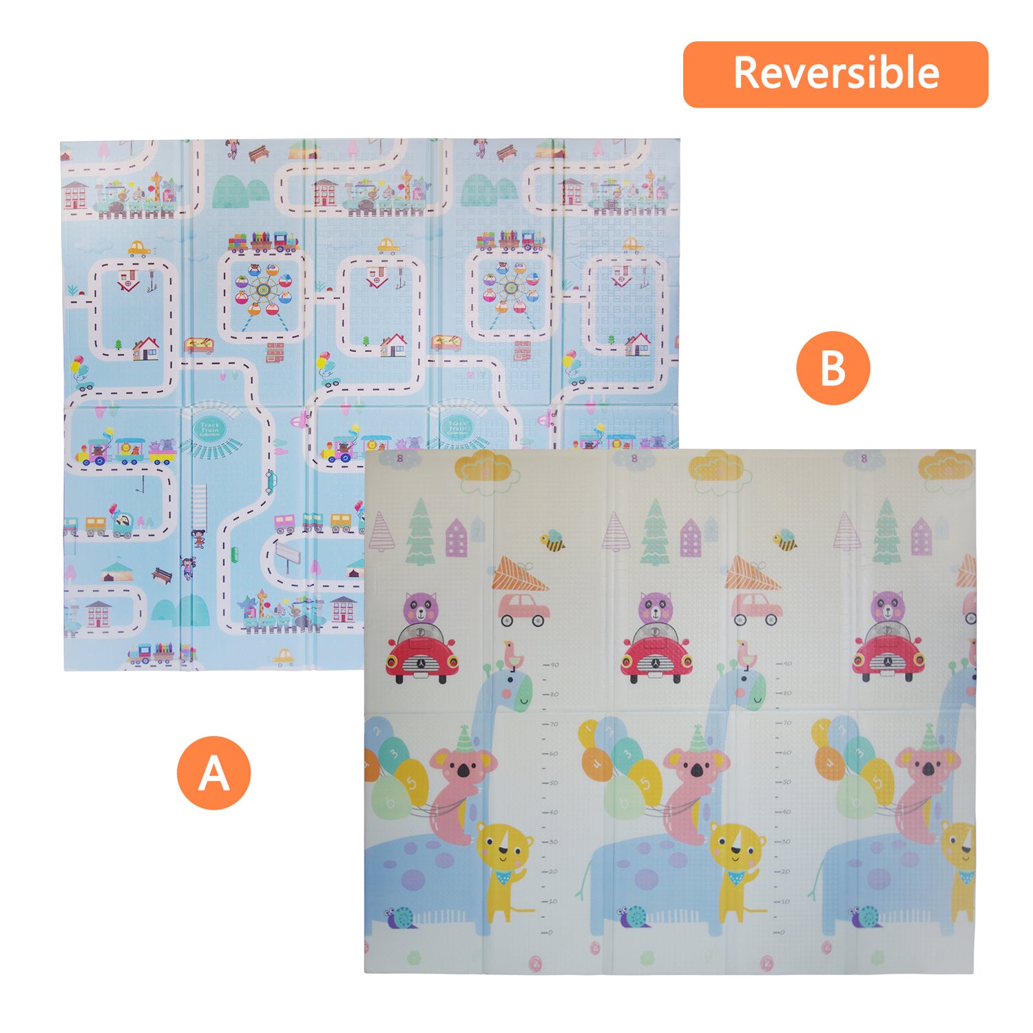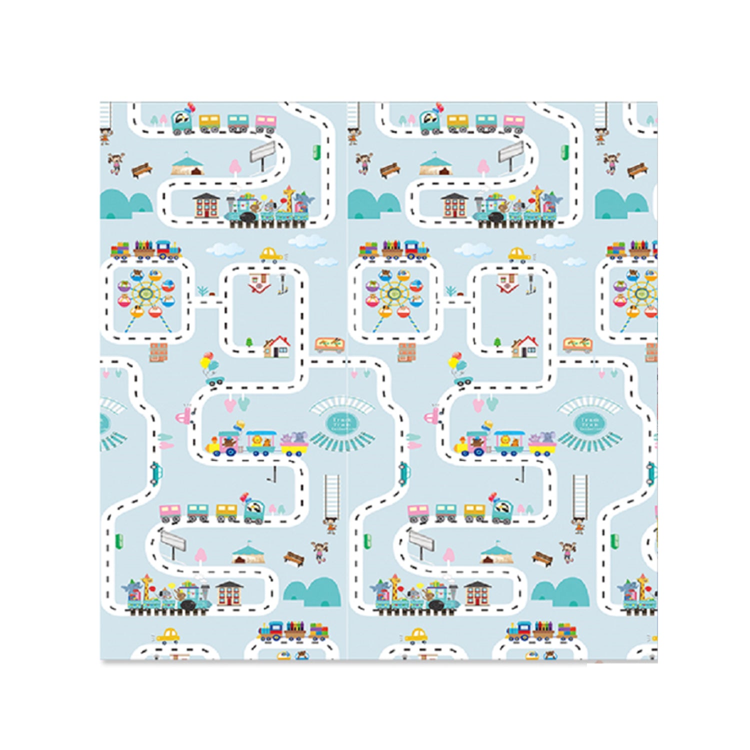 • Double-sided design with train tracks and cute animals to stimulate your baby's imagination