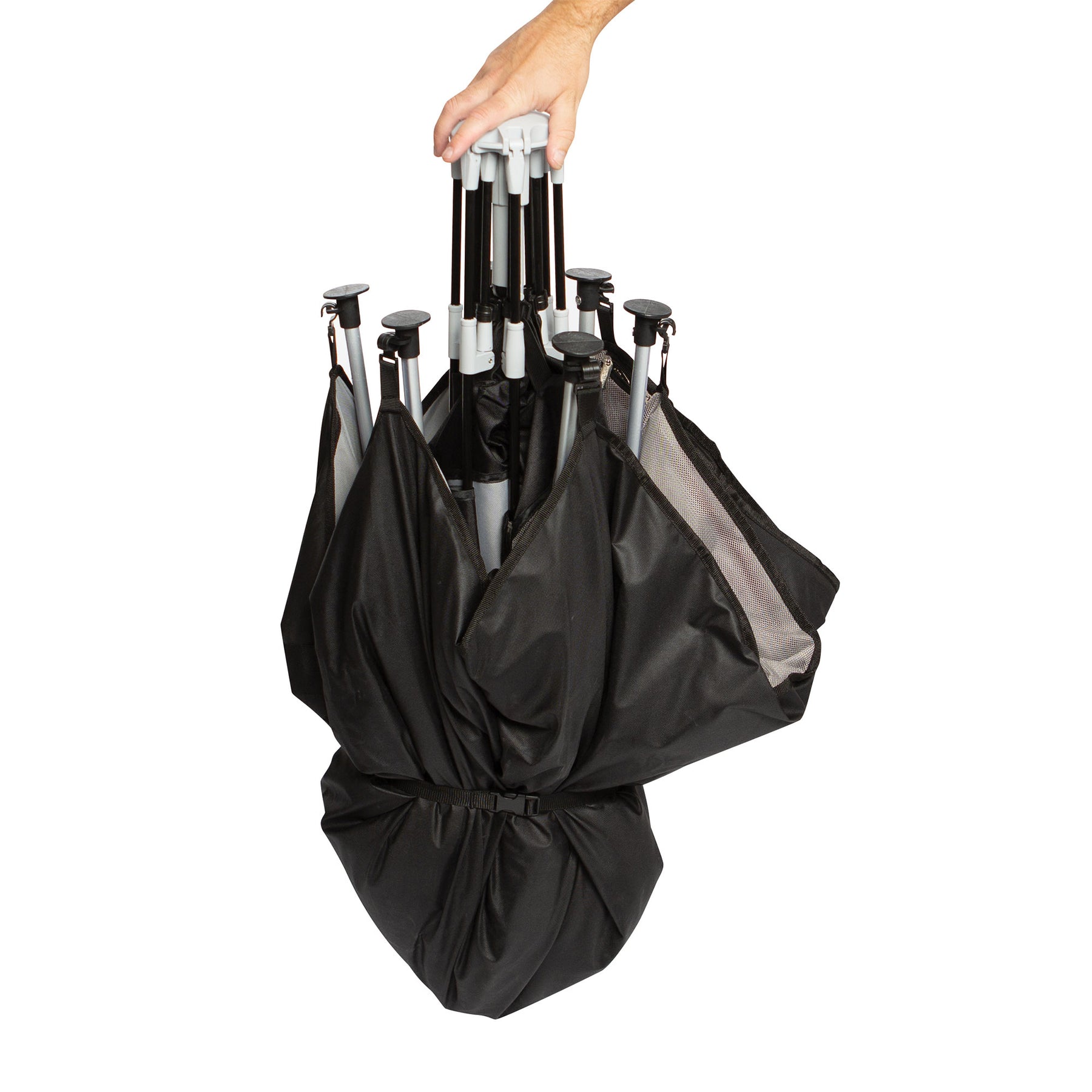 • Push lock secures automatically up and opens for use; Quick-store fold disassembles in a matter of seconds and includes a custom storage bag for easy portability