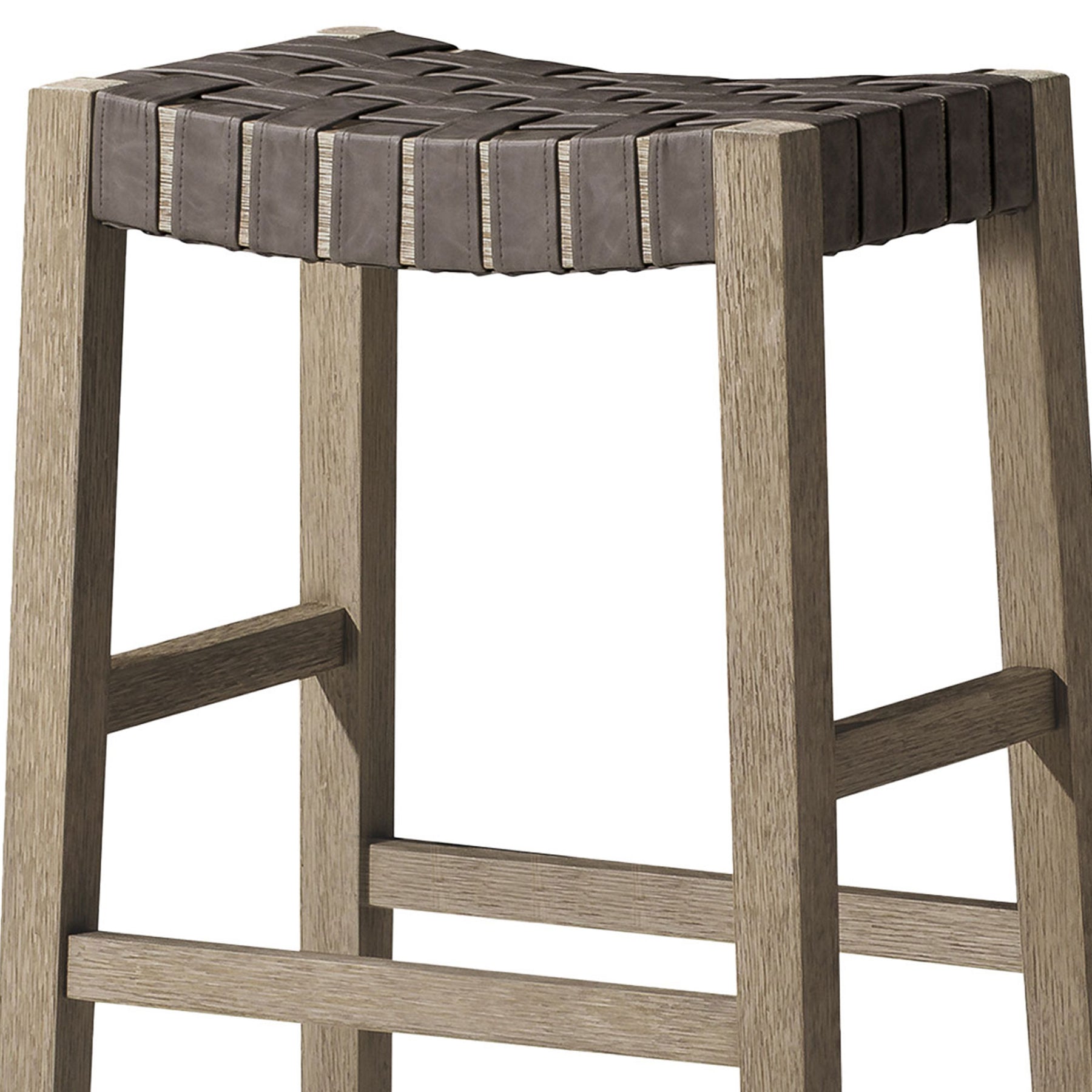 - A hand-brushed wood finish and hand-woven PU leather upholstery, the specially crafted touches on this barstool are exceptional