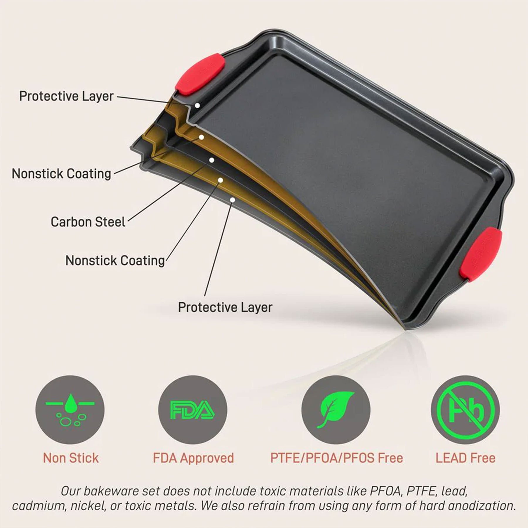 • Wide pan design makes it easy to stack and store the 3-piece bakeware set