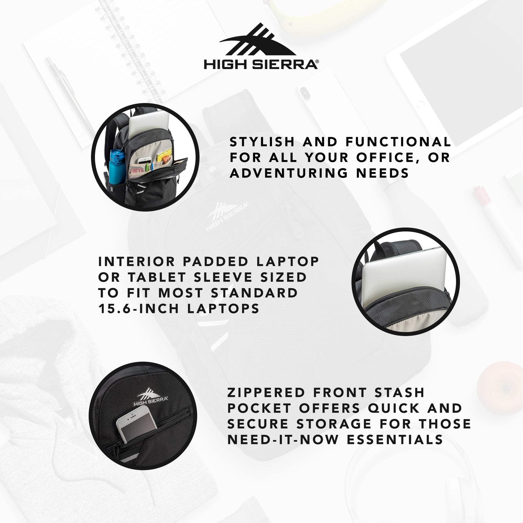 • Interior padded laptop or tablet sleeve sized to fit most standard 15.6-inch laptops
