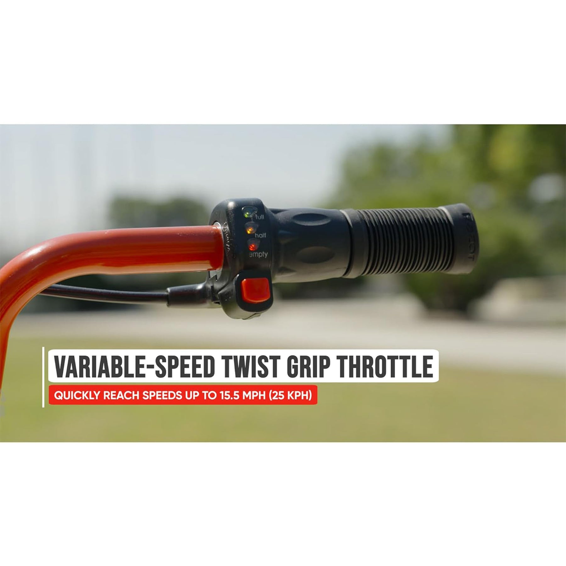 The Rambler 16 isn’t just about performance; it’s built for comfort and durability. With a padded seat, adjustable handlebars, and a robust steel frame, this motorbike is designed to handle daily use while keeping you comfortable on every ride. The twist-grip throttle offers easy speed control, making the Rambler 16 user-friendly for experienced riders and newcomers.