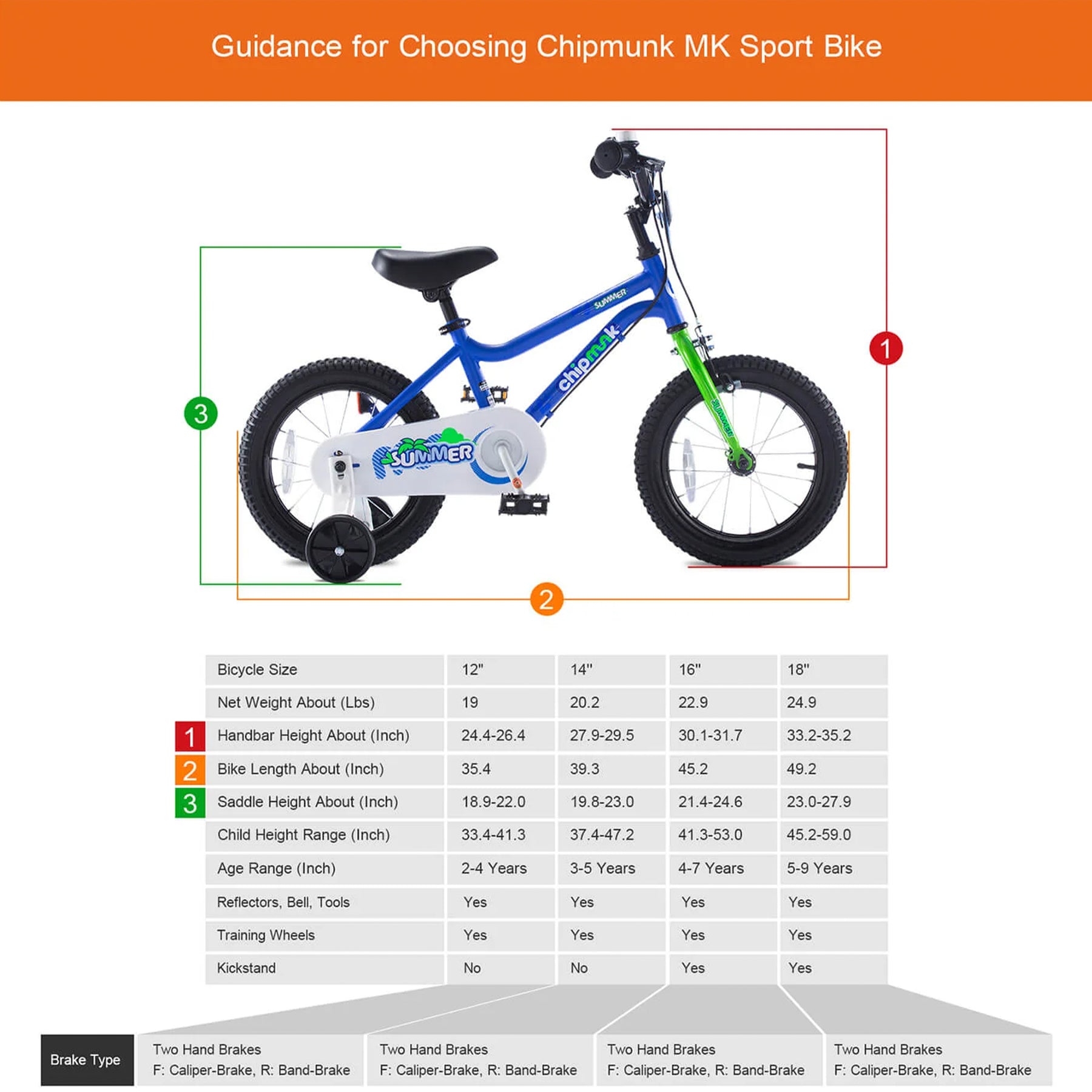 RoyalBaby Chipmunk 12" Kids Bike with Training Wheels & Bell, Blue (Open Box)