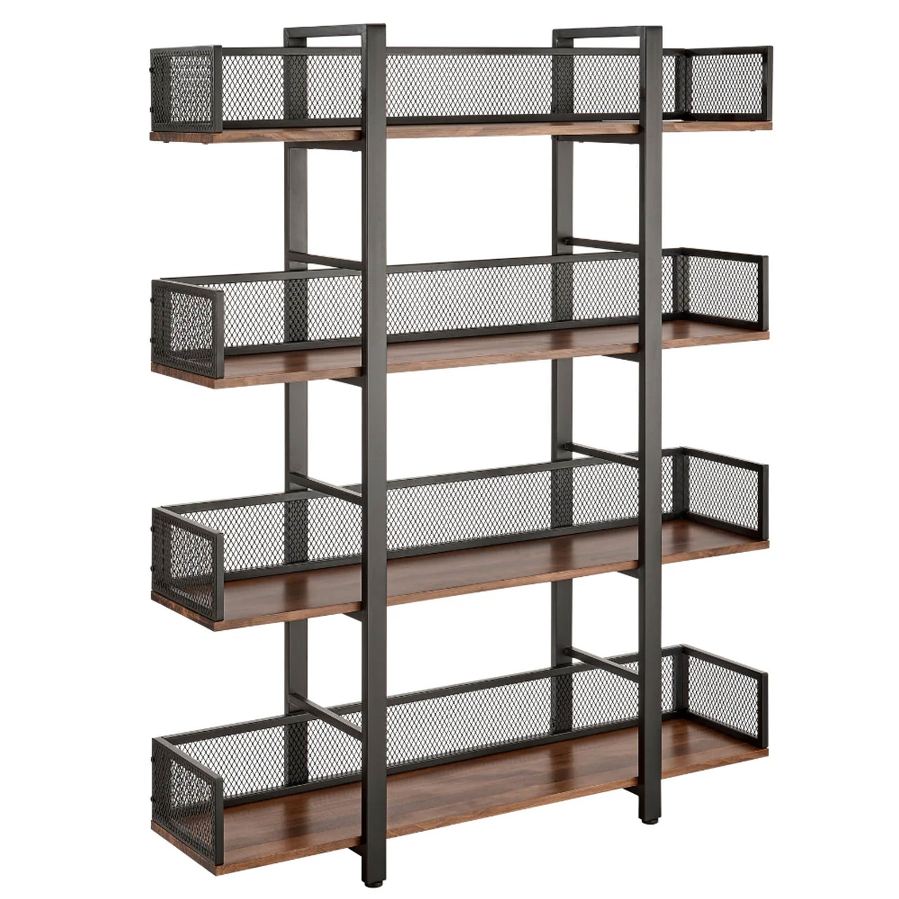 Sturdis 4 Tier Solid Industrial Bookshelf with Mesh Barriers, Black (For Parts)