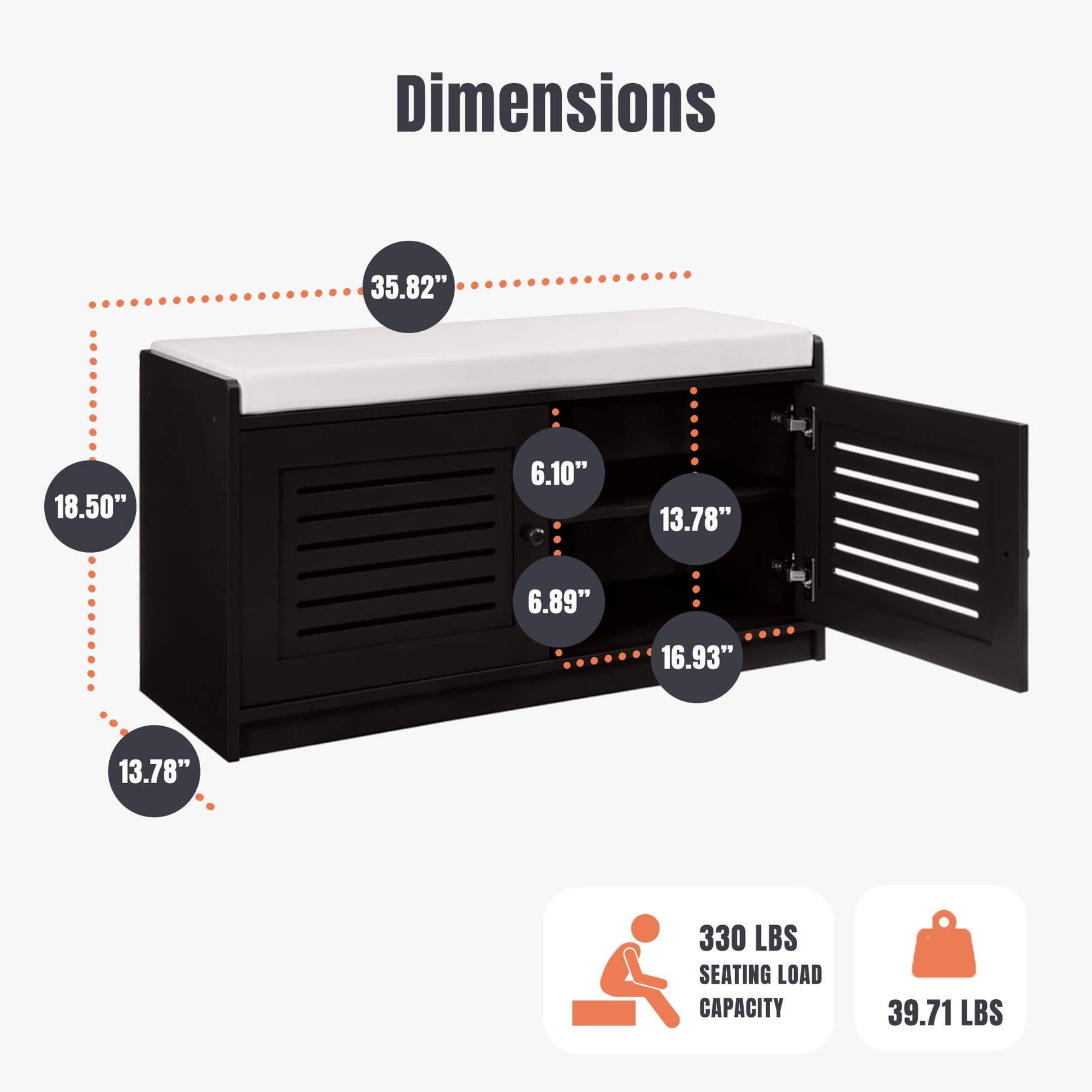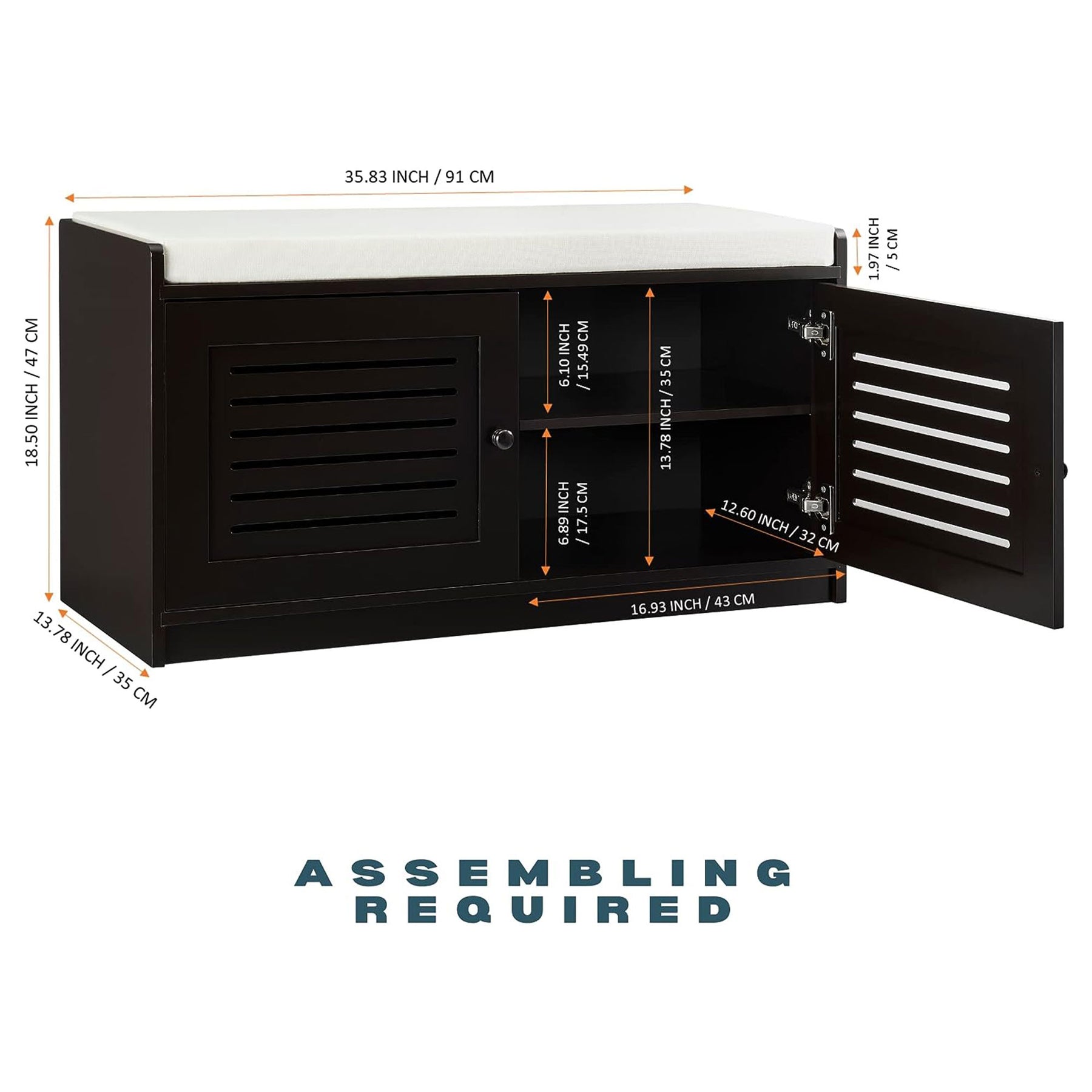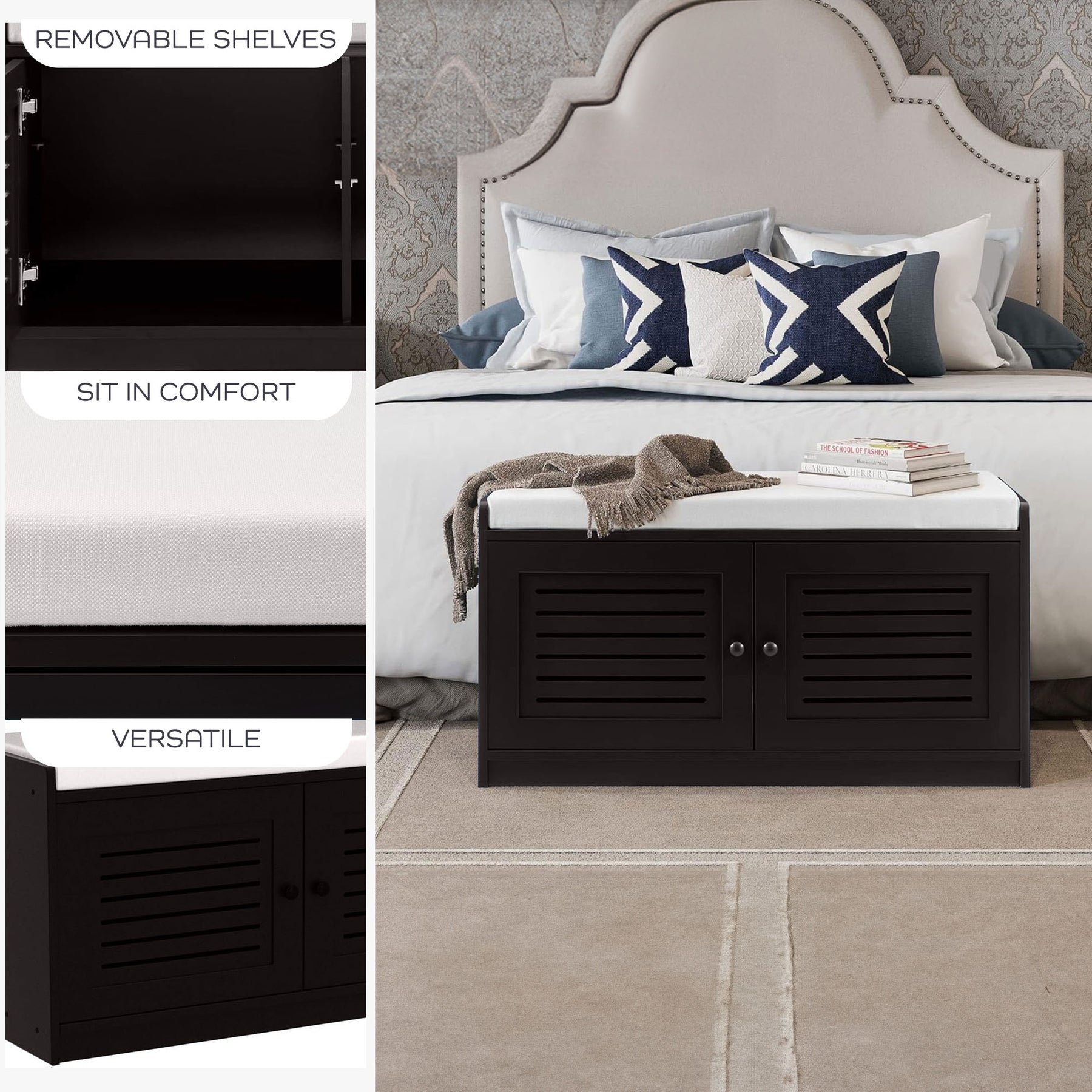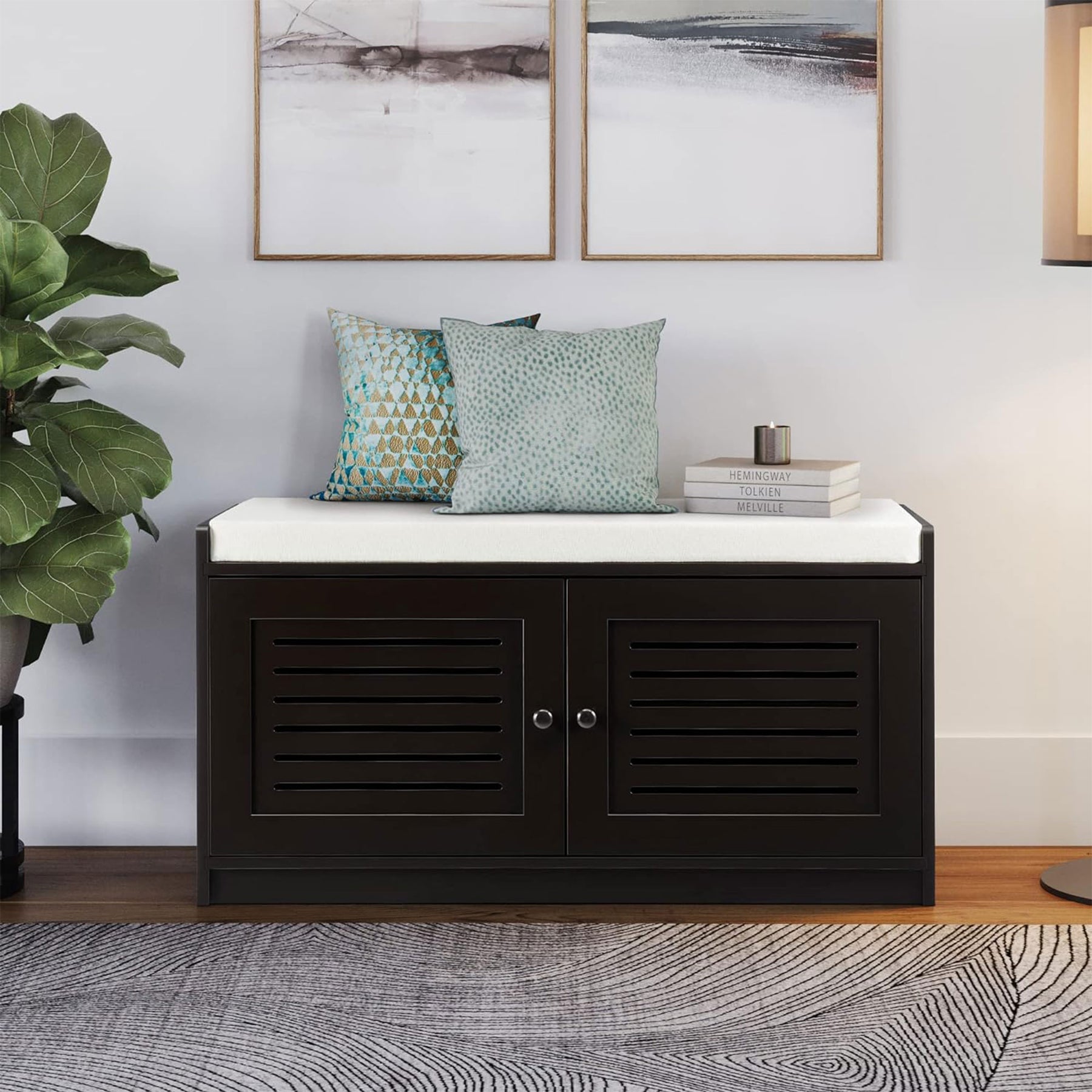 Sturdis Shoe Storage Cushion Seat Bench w/Adjustable Shelves, Espresso (Used)