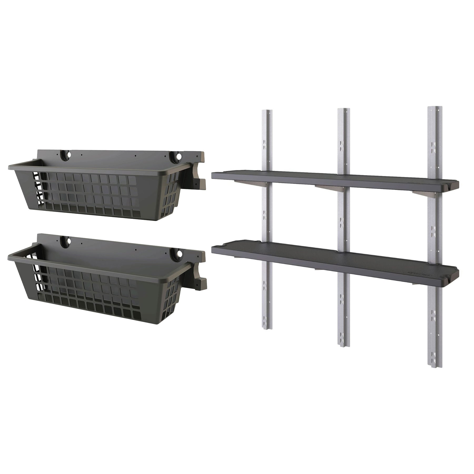 • Set of 2 convenient shelf baskets allows you to add even more storage to your shed; Shelf kit adds wall-mounted storage in sheds for tools and gear organization