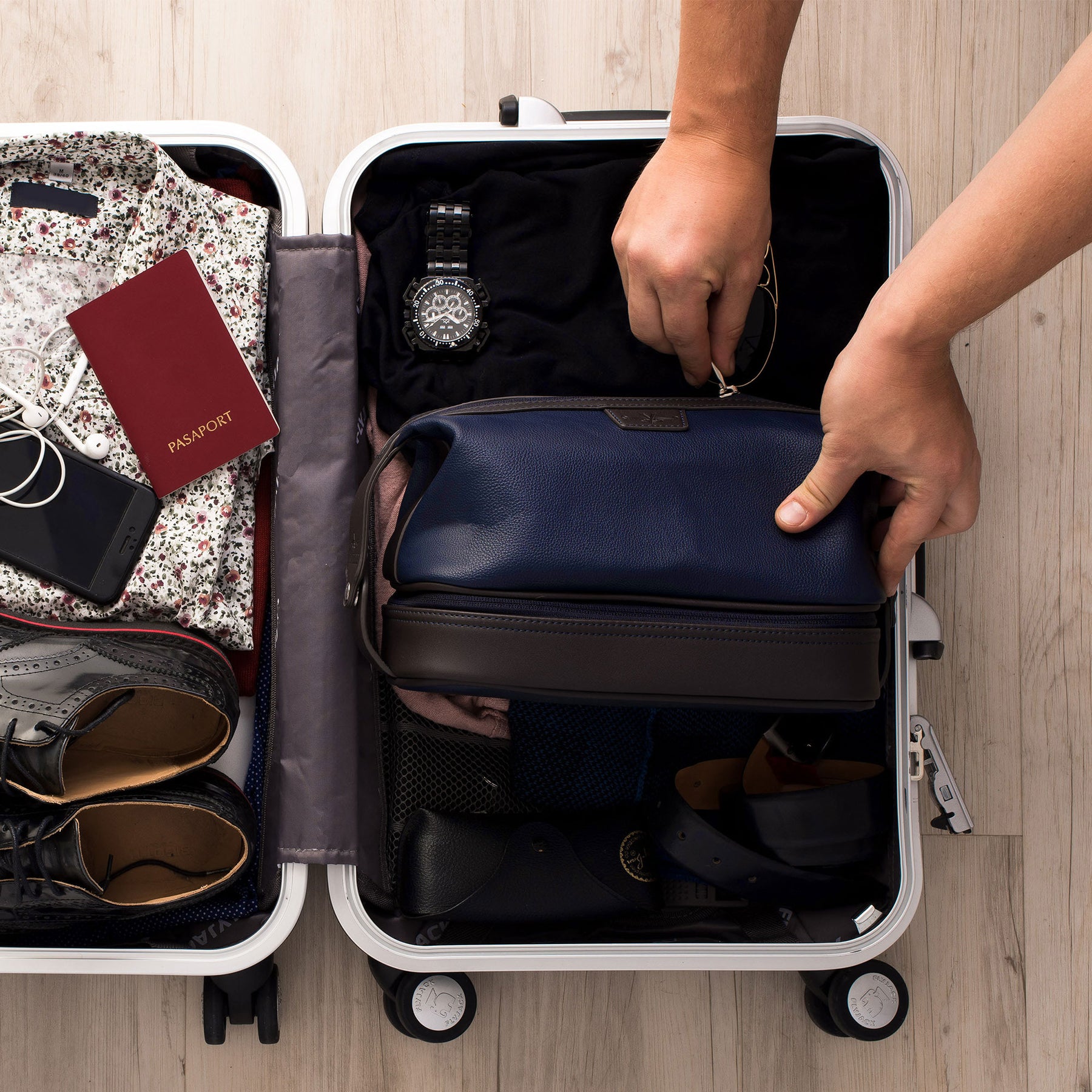 • Travel bag combines premium high-grade vegan leather and heavy-duty mesh that minimizes spills and leaks and protects items while you travel