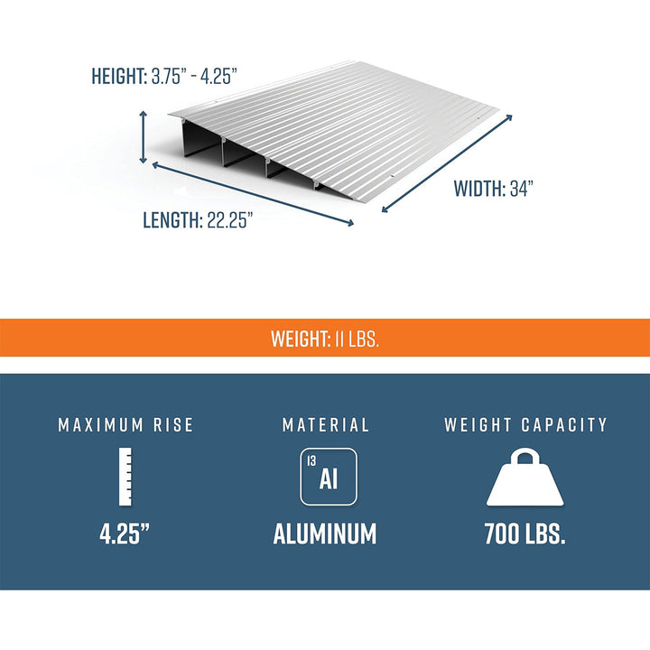 - Designed for doorways, sliding glass doors, and raised landings, this ramp ensures a smooth and sturdy path for wheelchair, scooter, walker, or cane users
