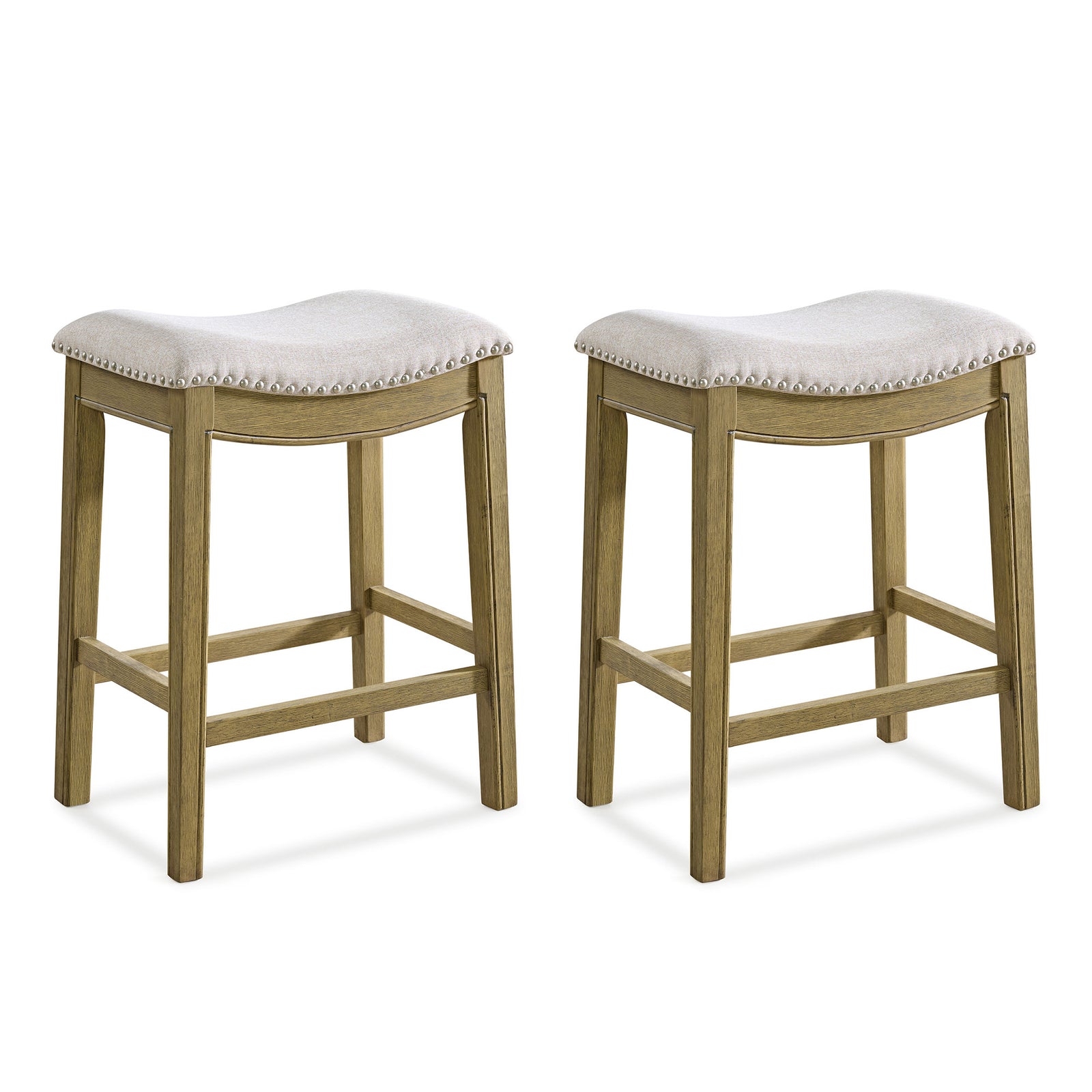 ROME + OAK Parker Backless Counter Stool, Natural with Cream Fabric, Set of 2