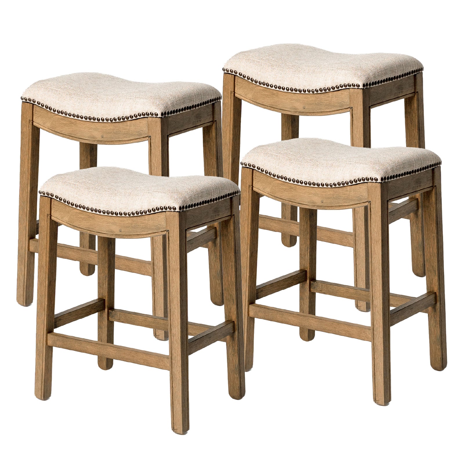Maven Lane Adrien Saddle Bar Stool, Natural, Counter Height (Open Box) (4 Pack)