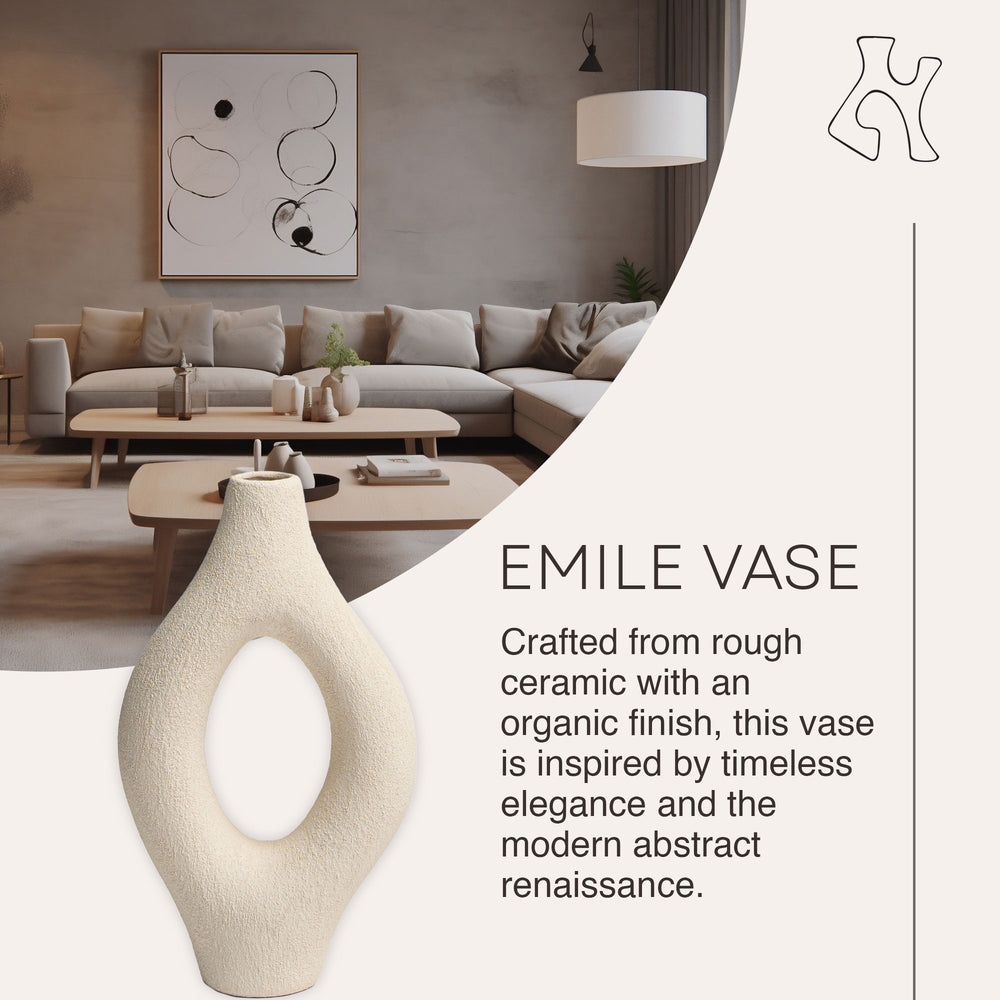Villa Moda Emile Abstract Organic Decorative Modern Vase, Medium, White