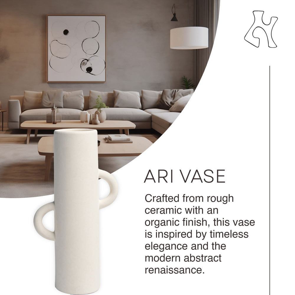 Villa Moda Ari Tube-Shaped Abstract Decorative Modern Vase, White (Open Box)