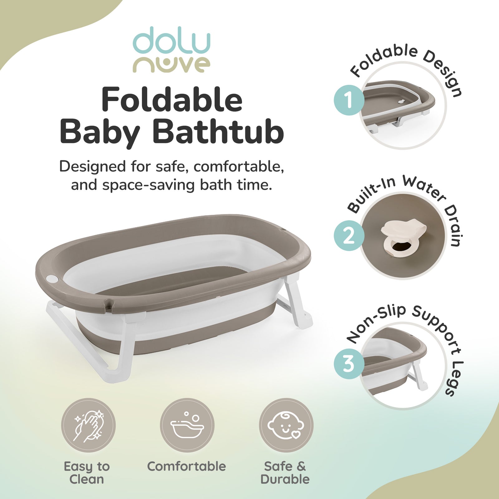 Dolu Nuve Foldable Baby Bathtub Collapsible Infant Bath Tub for Newborns, Grey