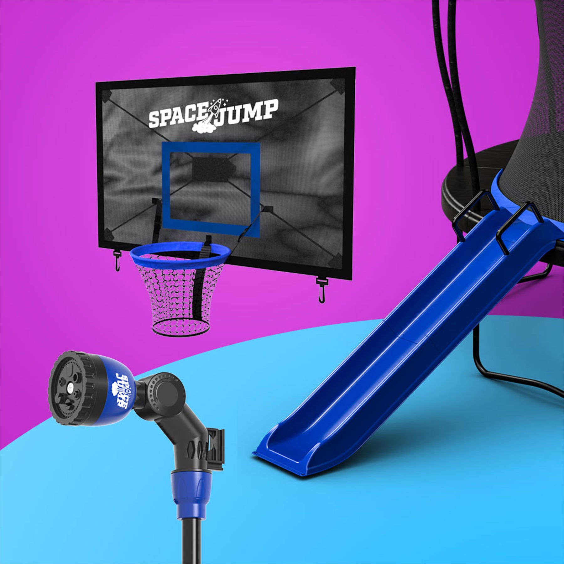 • Bundle includes a basketball hoop, slide, and sprayer to add even more fun to your outdoor trampoline