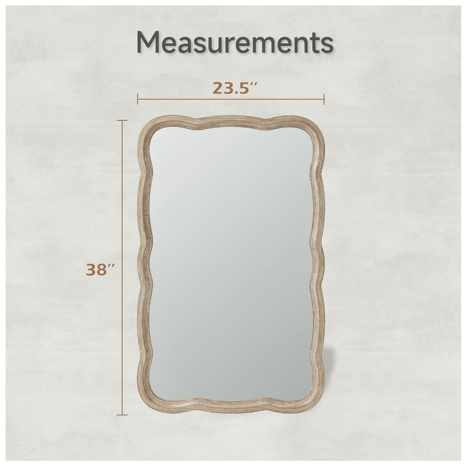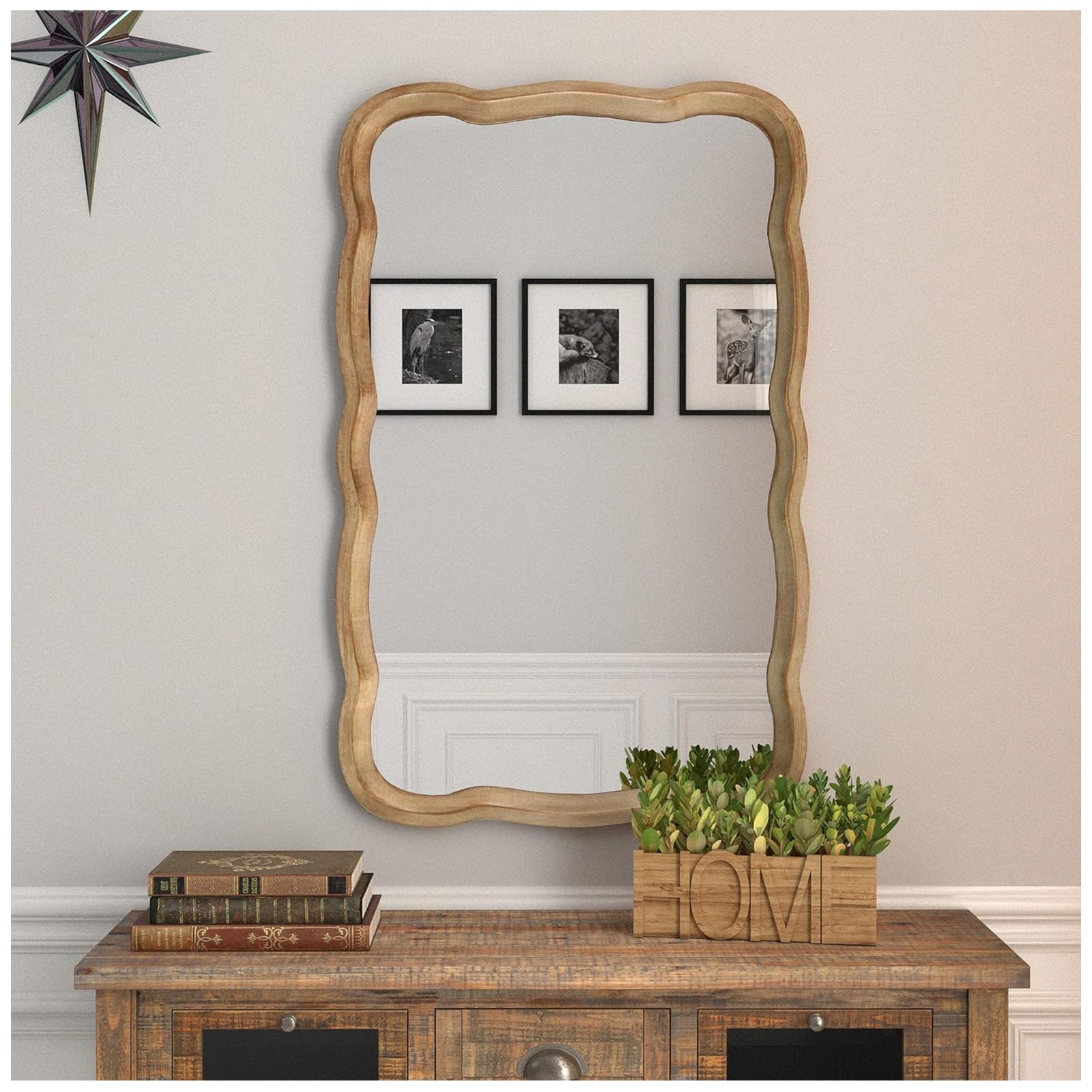 COZAYH Curved Wood Frame Accent Mirror, Modern Farmhouse Wall Decor, Natural