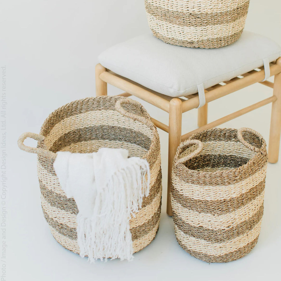 - Elevate your home organization with the versatile Camden woven seagrass baskets that effortlessly store and display your essentials