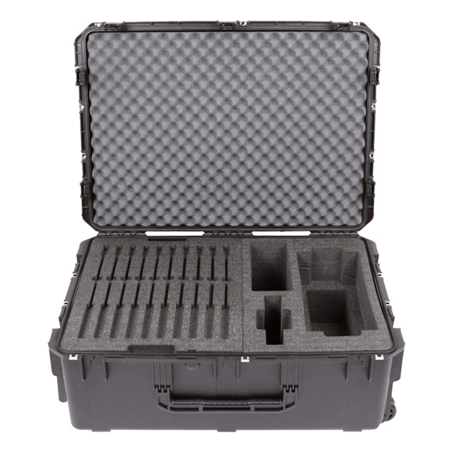 Crafted from ultra-durable polypropylene copolymer, this waterproof, airtight shell features a military-grade gasket seal that defends against water, shock, dust, and mold. The custom-cut foam insert securely houses up to 10 microphones, a transceiver, a charging station with 10 rechargeable batteries, and up to 10 wireless conference units with extra space for accessories, cables, or adapters.