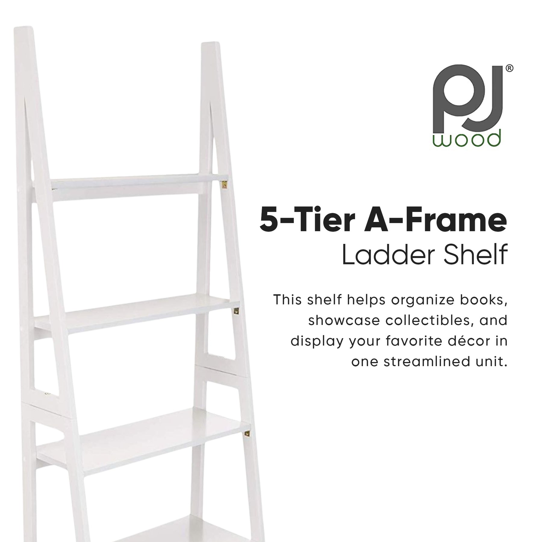 The PJ Wood 5-Tier A-Frame Ladder Shelf adds vertical style and smart storage to any living space. Whether you're styling your living room, office, or balcony, this shelf helps organize books, showcase collectibles, and display your favorite décor in one streamlined unit. With 5 progressively sized tiers, it’s ideal for maximizing space while maintaining a minimal, modern design.