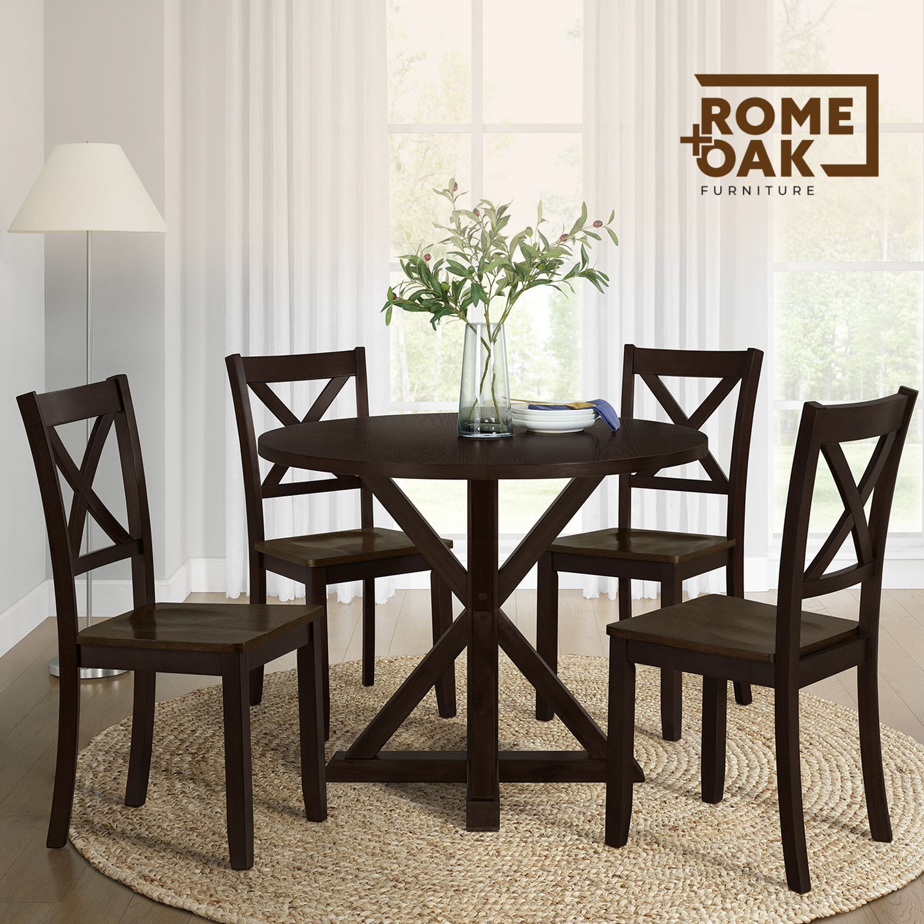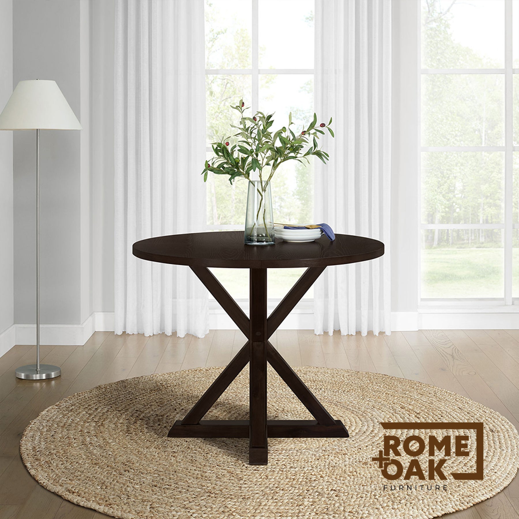 ROME + OAK Spier 40" Modern Farmhouse Pedestal Round Dining Table, Dark Brown
