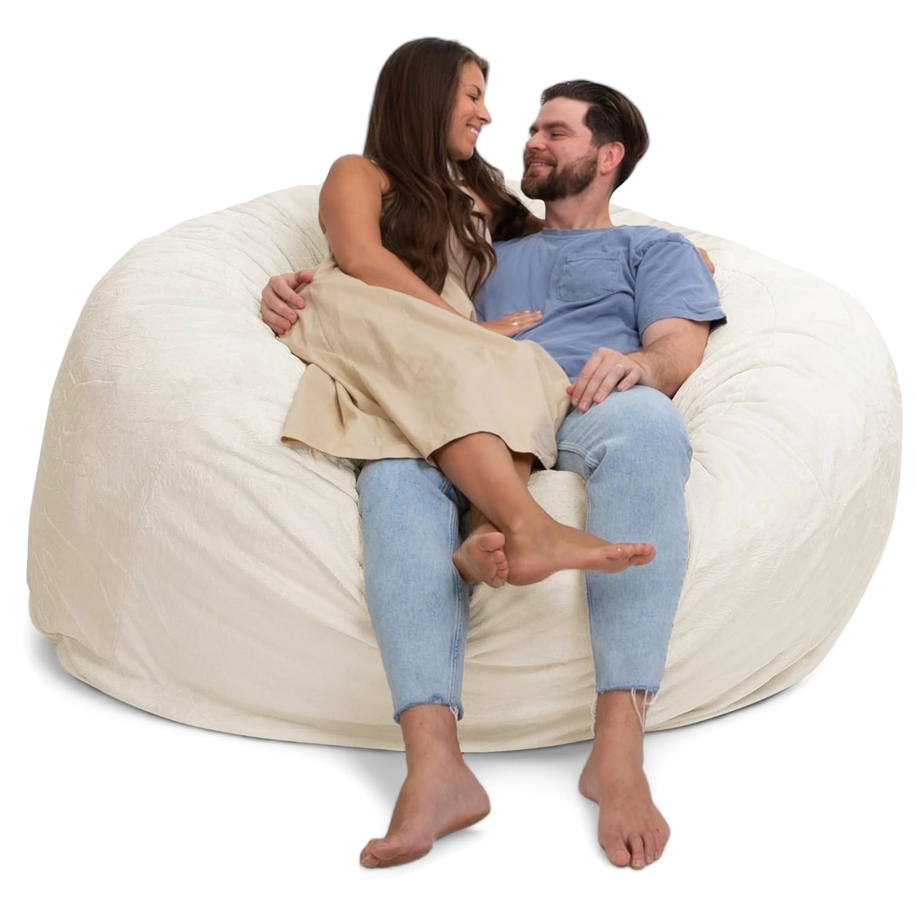 Ultimate Sack 6ft Bean Bag Chair, Oversized Indoor Comfy Lounger, Ivory Fur