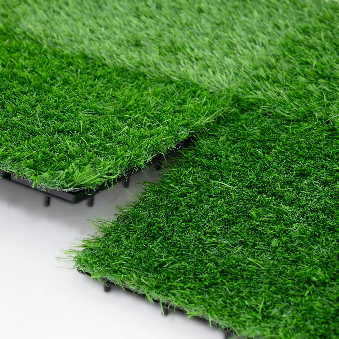 Bliss Outdoors 12"x12" Artificial PP Grass Interlocking Tiles, Green, Set of 30